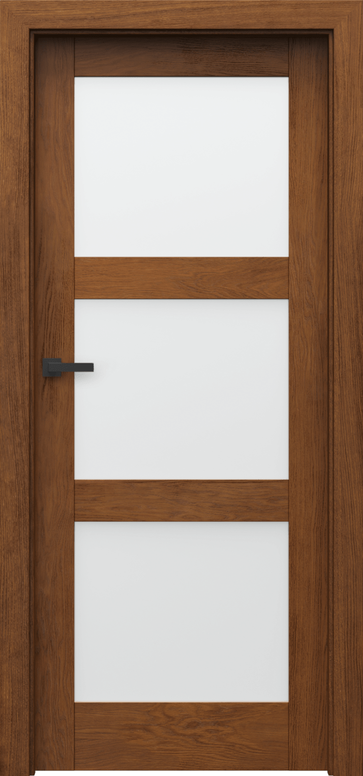 – Drzwi przylgowe: trzy zawiasy czopowe standard lub PRIME; bezprzylgowe: dwa zawiasy 3D (zawiasy stanowią wyposażenie ościeżnicy) – Zamek z czołem srebrny połysk lub złoty połysk: na klucz z