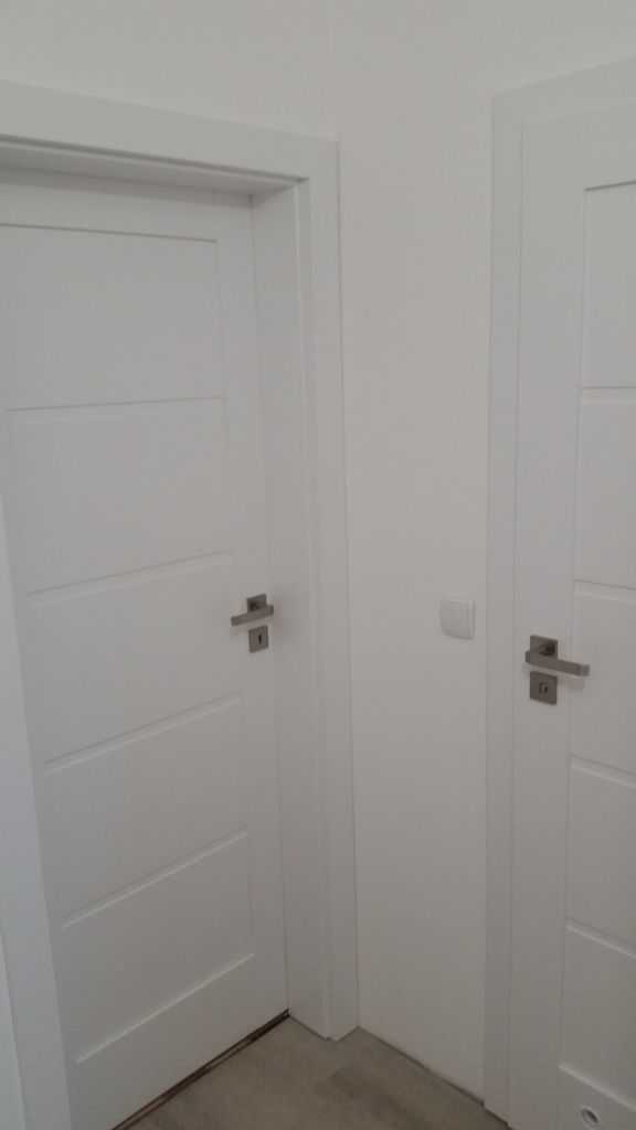 W Czarnowie koło Bydgoszczy nasi montażyści dostarczyli i zamontowali białe drzwi wewnętrzne. Model, który spodobał się klientowi to Porta Verte Home G.0. Konstrukcja skrzydła składa się z ramiaków poziomych i płycin. Drzwi zostały osadzone na ościeżnicach regulowanych przylgowych. Dzięki swojej specyficznej konstrukcji ościeżnice te wyróżniają się ścisłym przyleganiem, co pozwala na uchronienie krawędzi ściany przed ewentualnymi uszkodzeniami. W drzwiach łazienkowych zamontowaliśmy tuleje wentylacyjne w kolorze skrzydła. Oczywiście zamek z blokadą WC. Natomiast drzwi pokojowe zostały wyposażone w zamki na klucz zwykły. Klient wybrał również drzwi ukryte Sara Eco z firmy DRE do samodzielnego malowania. Rozwiązanie to pozwala na kreatywne projektowanie wnętrz i umożliwia wykończenie powierzchni skrzydła w kolorze ściany. Dodatkowo klient zdecydował się na klamki NEXT w kolorze srebrnym z katalogu Porta.