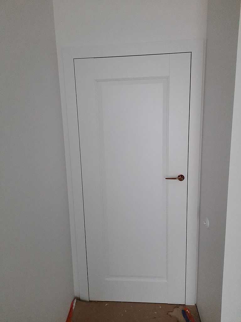 Nasza grupa montażowa dostarczyła i zamontowała trzy komplety drzwiowe. Klienci zdecydowali się na model Hampton 1 z wyjątkowej kolekcji drzwi DRE Supreme By K. Miruć. Wybrane drzwi charakteryzują się ramową konstrukcją oraz profilowanymi płycinami wewnętrznymi. Pokrycie stanowi wysokiej jakości folia MAT w kolorze białym, która jest odporna na zarysowania i zabrudzenia. Nasi montażyści osadzili skrzydła na ościeżnicach bezprzylgowych. Dzięki takiemu rozwiązaniu zawiasy są niewidoczne, a skrzydło licuje się od strony zawiasowej z futryną.
