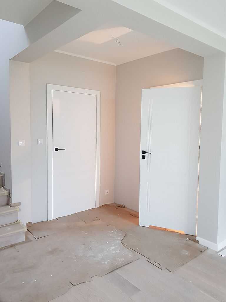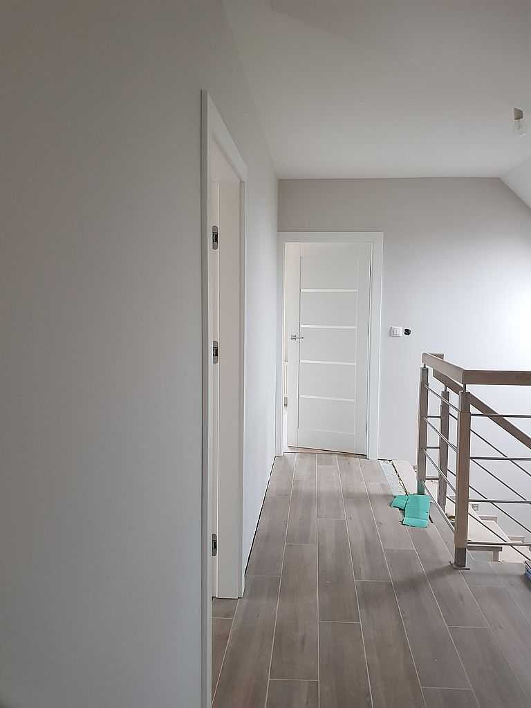 Dodatkowo w niektórych pomieszczeniach wykorzystaliśmy model PORTA Premium V pokryty również farbą akrylową UV. Okucia DIVO FIT w kolorze czarnym oraz chrom satyna.