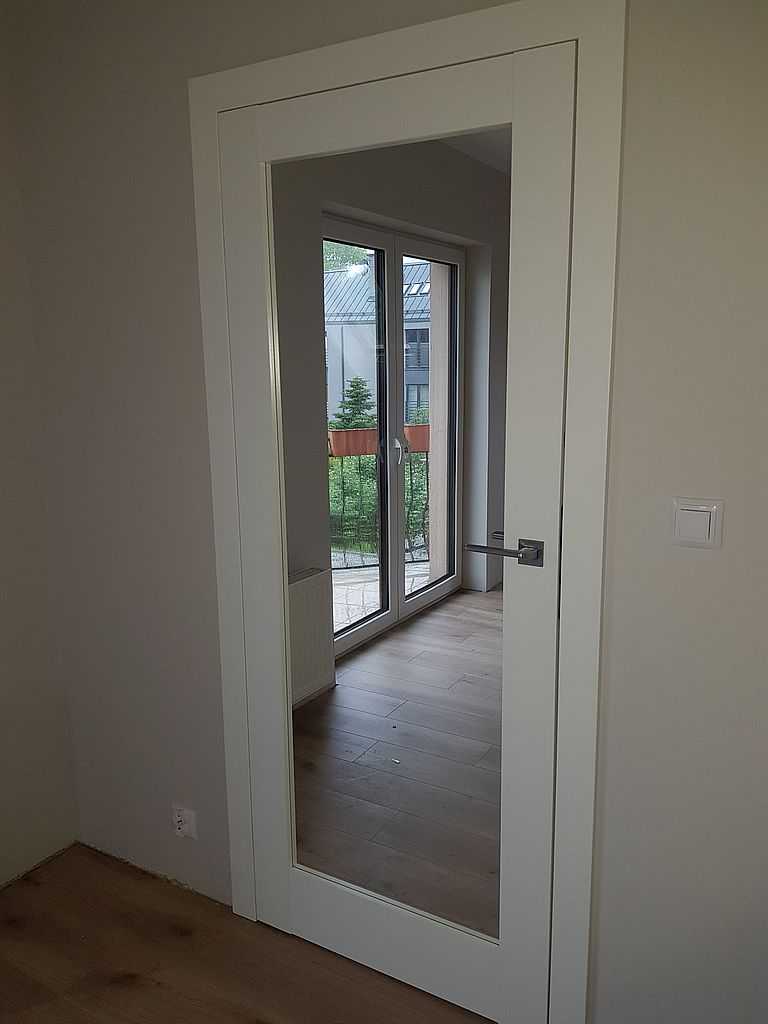 Drzwi do domu Gdynia. Dostarczyliśmy i zamontowaliśmy drzwi Porta Grande UV w nowym domu jednorodzinnym. Drzwi pokryte lakierem UV zapewniają nam ochronę i odporność na różnego rodzaju zabrudzenia, ścieranie, zarysowania oraz uderzenia. Dlatego doskonale sprawdzą się zarówno w domu jednorodzinnym, jak i w mieszkaniu. Na zdjęciach prezentujemy model G4 z delikatnymi przeszkleniami. Skrzydła i ościeżnice w wersji bezprzylgowej z opaskami o szerokości 8 cm. Drzwi zostały wyposażone w 3 zawiasy chowane oraz zamki magnetyczne.