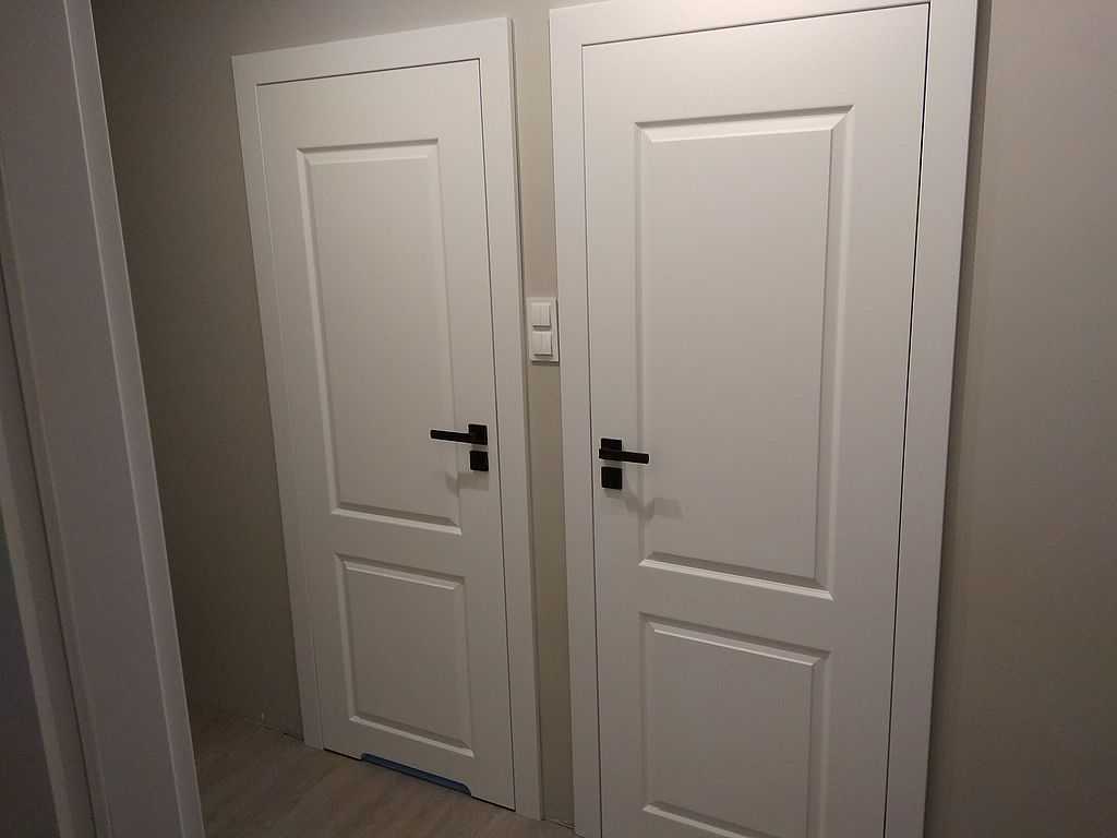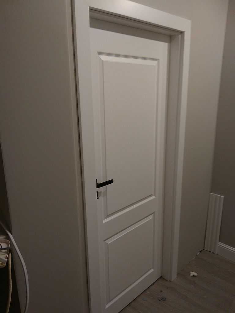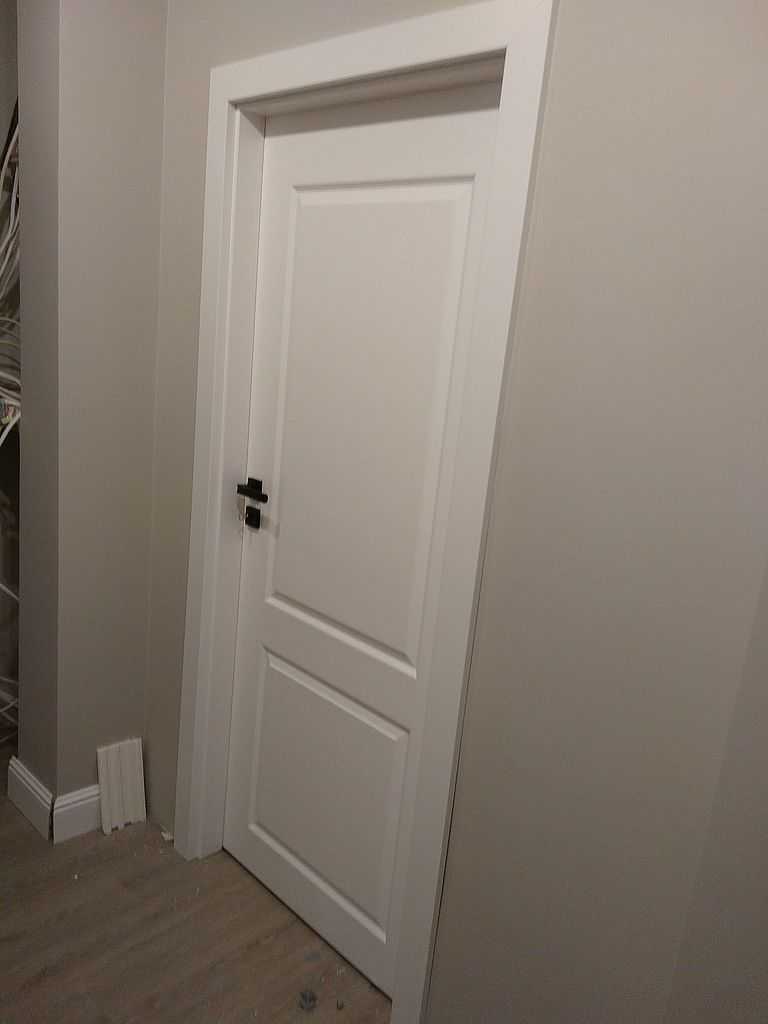 Drzwi Porta Royal Gdańsk Kokoszki – dostarczyliśmy i zamontowaliśmy drzwi Porta Royal w kolorze białym pokryte lakierem Premium z idealnie gładką powierzchnią. Na zdjęciach prezentujemy model A – bardzo klasyczny wzór. Dzięki zastosowaniu wersji bezprzylgowej skrzydło mamy zlicowane z ościeżnicą, a zawiasy pozostają niewidoczne. Klamki Topaz w kolorze czarnym.