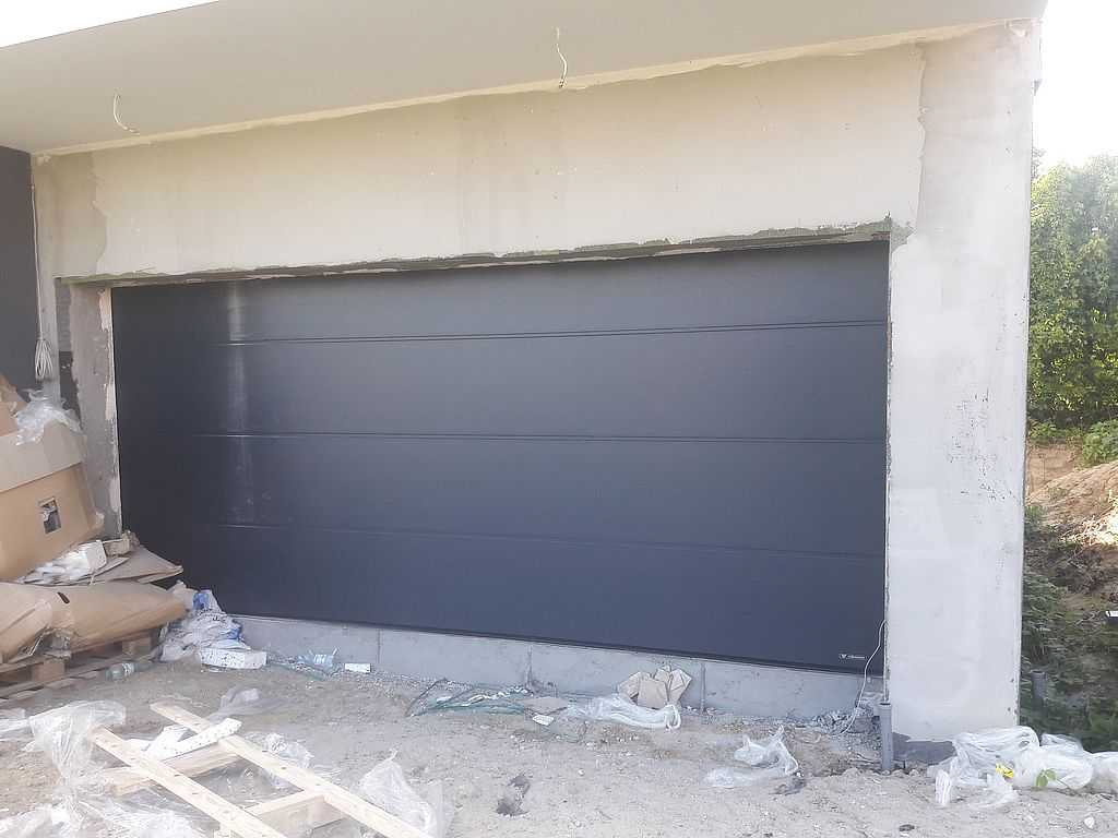 Na załączonej dokumentacji fotograficznej możemy zauważyć zamontowaną bramę o strukturze panelu Smoothgrain, gładkiej. Panel INNOVO równy 60 mm w kolorze antracytowym. Jest to typowy wymiar bramy w którym wysokość jest równa 5000 mm, a szerokość 2375 mm. Dzięki podwójnej uszczelce dolnej oraz uszczelnieniu obwodowemu posiada wysoką regulację termiczną, a współczynnik przenikania ciepła panelu wynosi Up= 0,33 W/m2K. Jest wyposażona w podwójne łożyskowane rolki oraz elastyczne osłony międzypanelowe. Brama jest podnoszona automatycznie, zastosowaliśmy napęd SOMFY Metro 1000 io. W zestawie bramy, oprócz napędu i szyny są zamieszczone również dwa piloty czterokanałowe. Godnym uwagi jest to, że Klient może otwierać bramę za pomocą swojego smartfona. Wystarczy aplikacja i dzięki centralka Connexoon.