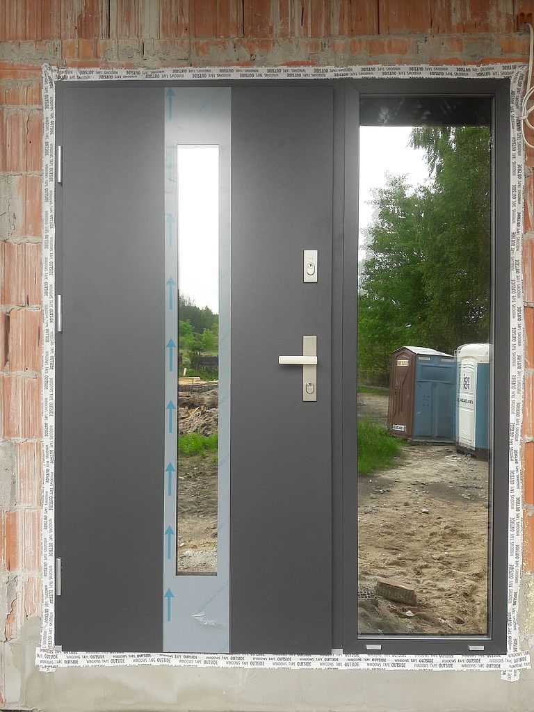 Dodatkowo, jako drzwi zewnętrze klient wybrał markę WIKĘD produkującą m.in. drzwi stalowe. Konkretniej model Optimum, świetnie nadający się jako drzwi zamykające budynki jedno i wielorodzinne. Cały zestaw składa się ze skrzydła Optimum – wzór 30 o rozmiarze „90”, lewe otwierane na zewnątrz. Skrzydło w kolorze „gładki antracyt” z przeszkleniem – reflex płaski brąz oraz nowoczesną aplikacją ze stali nierdzewnej. Z prawej strony zestawu jest naświetle boczne – przeszklone szybą bezpieczną. Wszystko w ciepłej ramie TERMO z dwiema uszczelkami i wkładem termoizolacyjnym oraz progiem z przegrodą termiczną dzięki czemu ciepło nie będzie uciekać z domu. Okucia to klamka Magnus i rozeta górna z zabezpieczeniem wkładki – w tej wersji otwór pod wkładki jest dodatkowo wzmocniony blachą ze stali nierdzewnej. Kolorystycznie zarówno drzwi, jak i brama zgrały się idealnie mimo dwóch różnych producentów. Efekt naszej pracy na załączonych zdjęciach.