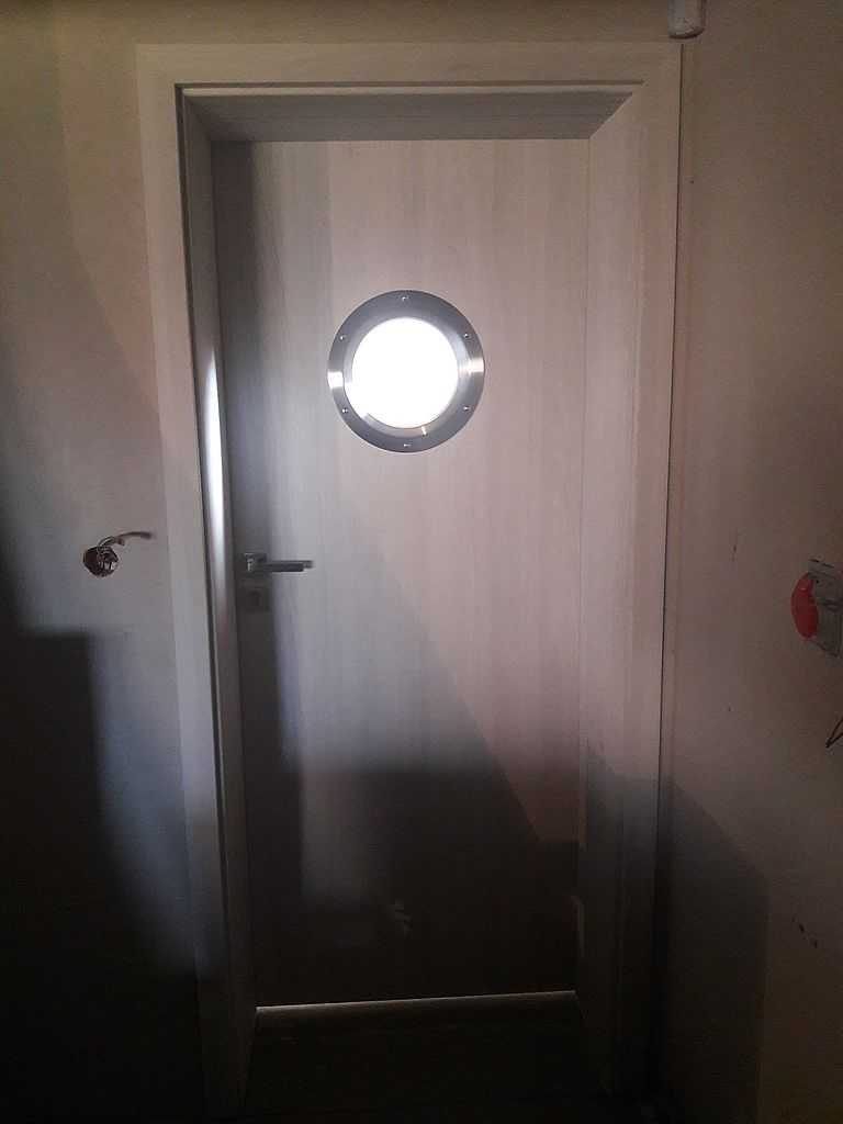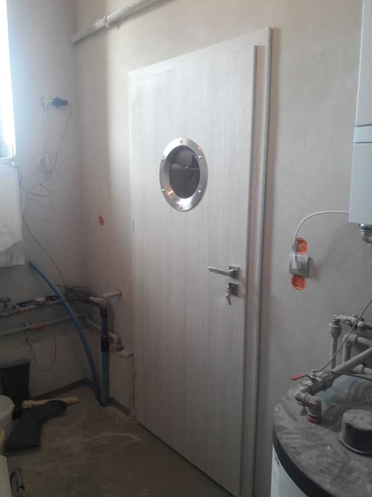 Jako drzwi do garażu klient wybrał nietypowy model tj. Standard 10 – bulaj stalowy, który charakteryzuje się przeszkleniem w postaci koła u góry skrzydła. Drzwi wypełnione płytą wiórowo-otworową, co wzmacnia konstrukcję i wpływa korzystnie m.in. na różnice temperatur miedzy pomieszczeniami. Efekt końcowy widać na załączonych zdjęciach.