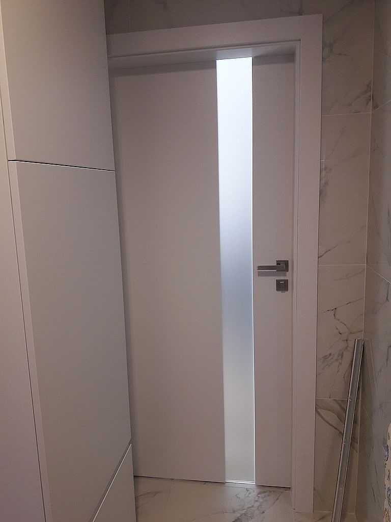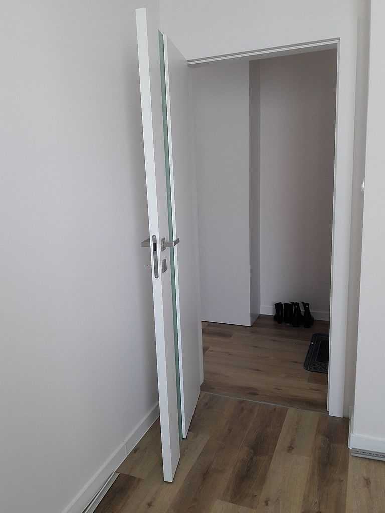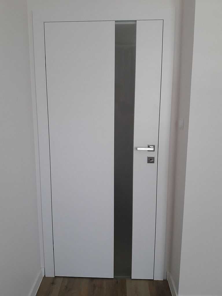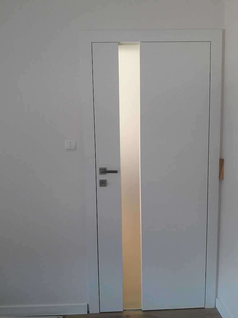 Na Woli Duchackiej nasi montażyści zamontowali drzwi DRE Vetro – łącznie trzy komplety. Klientka wybrała prosty, elegancki wzór VETRO model D1, w kolorze biały mat DRE CELL, z szybą matową – DECORMAT. Drzwi bezprzylgowe VETRO, posiadają ramę wykonaną z płyty MDF wzmocnioną sklejką, a wypełnienie stanowi płyta wiórowo-otworowa, co daje solidną konstrukcję skrzydła. W standardzie są dwa chowane zawiasy „ESTETIC 80” oraz zamki magnetyczne ( do wyboru: na klucz, zamek patentowy, zamek WC lub zamek oszczędnościowy).