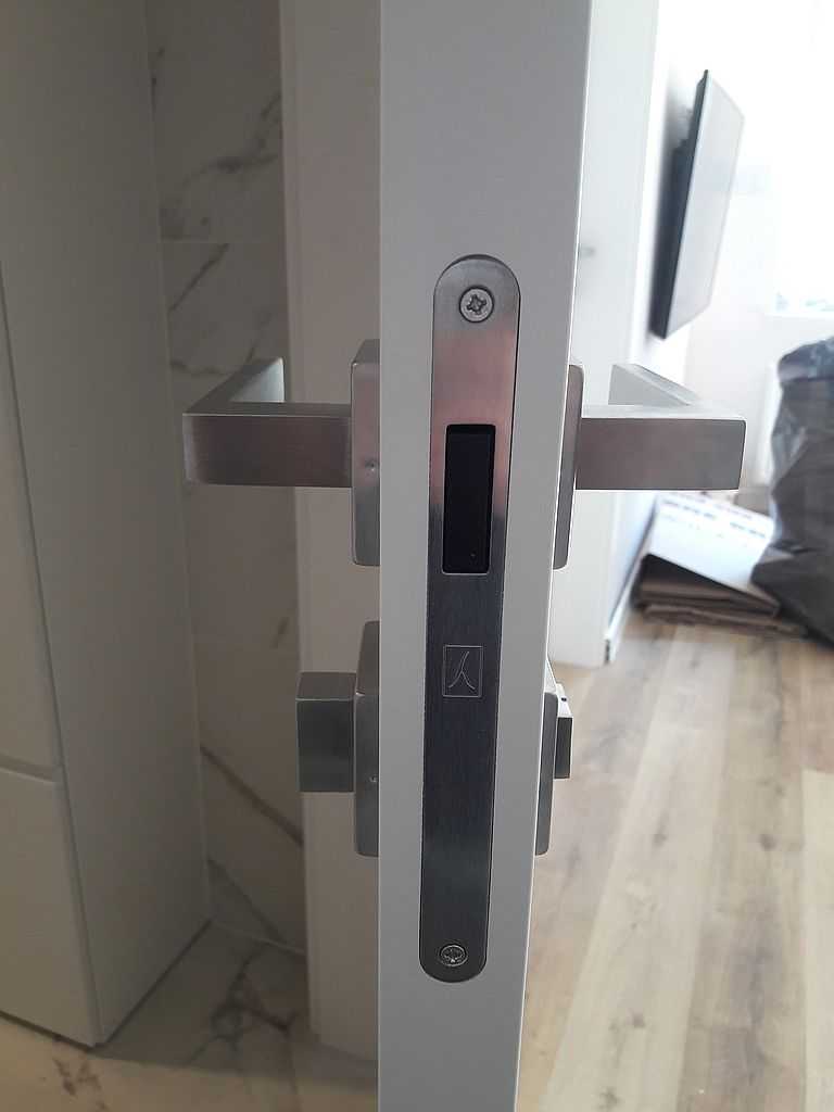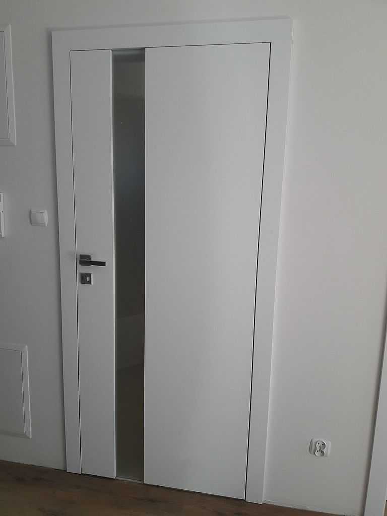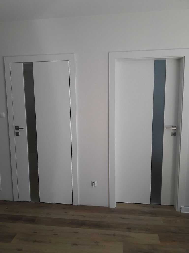 Ościeżnice bezprzylgowe, regulowane – o różnych zakresach regulacji, dzięki czemu możemy dopasować się do każdej grubości ściany. W tym konkretnym wypadku o zakresach 14-16, 16-18 z opaskami o szerokości 80mm, łączonymi na 45 stopni. Drzwi bezprzylgowe charakteryzują się brakiem felca, są idealnie zlicowane z ościeżnicą. To genialnie sprawdza się z nowoczesnym wystrojem wnętrza. Całość zamontowanej stolarki dopełniły klamki METAL-BUD. Model Topaz ze stali nierdzewnej na rozecie kwadratowej. Wynik naszej pracy na załączonej dokumentacji zdjęciowej.