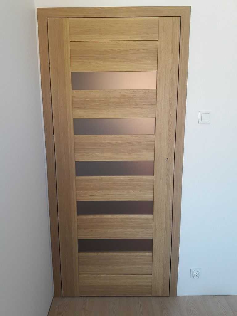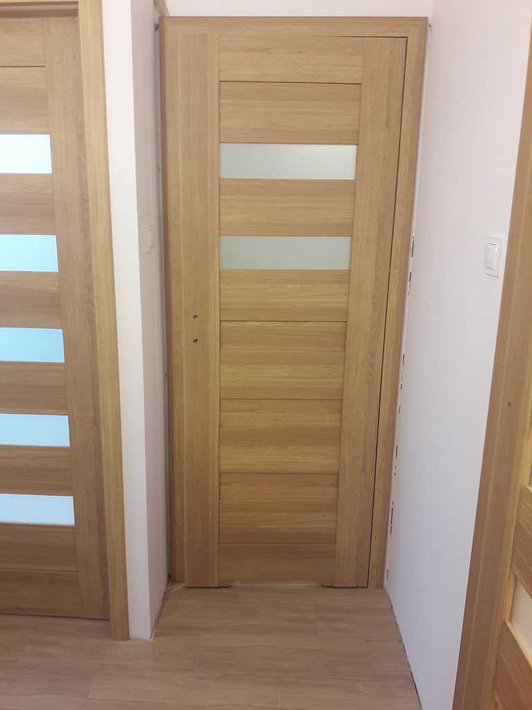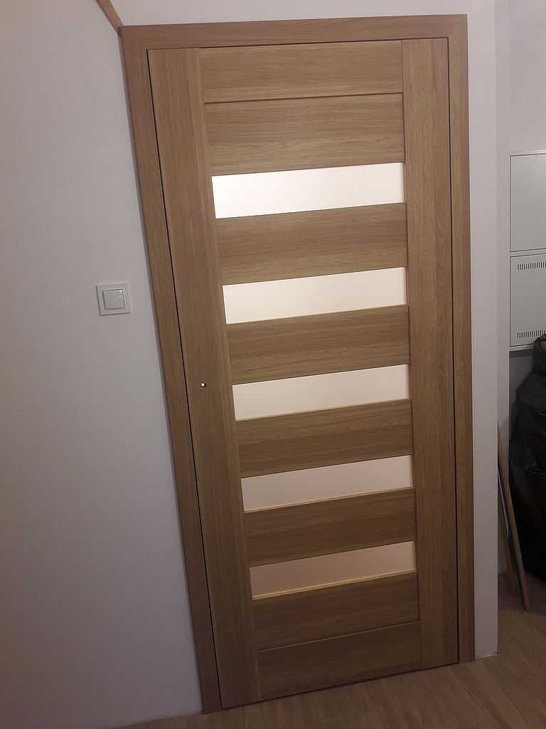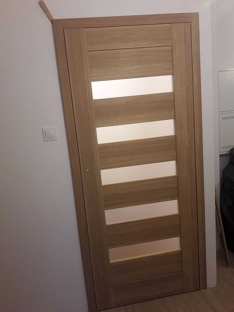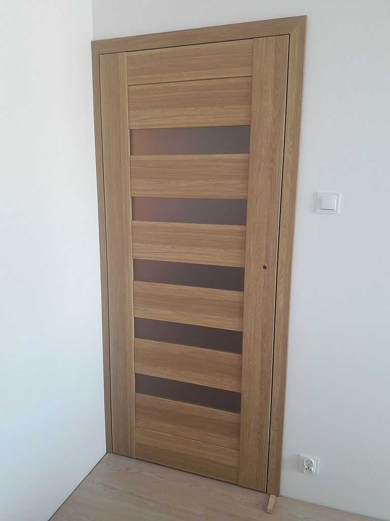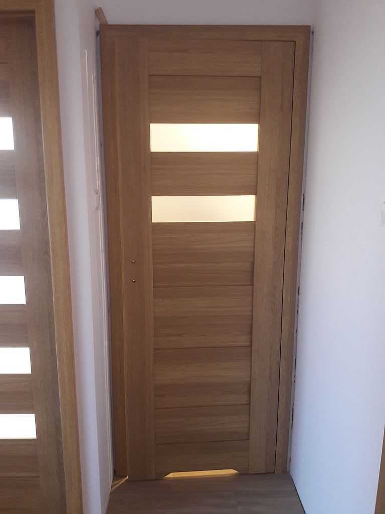 Są to skrzydła ramiakowe STILE. Dostępne w wersji przylgowej i bezprzylgowej. W Kłaju, miasteczku niedaleko Krakowa nasi montażyści zamontowali ten właśnie model, łącznie 4 komplety. Klient zdecydował się na drzwi w wersji bezprzylgowej, w kolorze dąb greko. Do pokoi zdecydował się na MAGNOLIĘ 1, przeszklone pięcioma poziomymi szybkami.  Do łazienki zaś na MAGNOLIĘ 4 z dwiema szybkami i wentylacją w postaci podcięcia. Wszystko z ościeżnicami dedykowanymi regulowanymi i opaskami 80 mm.