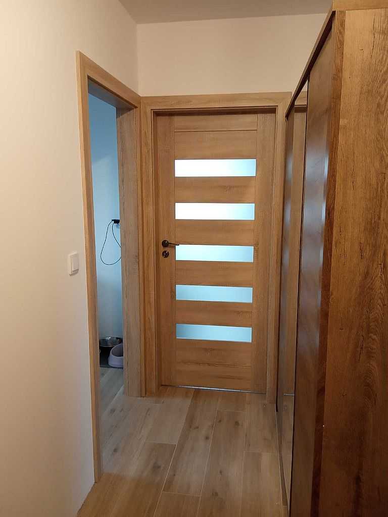 Drzwi Erkado Kraków. Dostarczyliśmy i zamontowaliśmy skrzydła Producenta, który otrzymał złoty medal „Poznańskich Targów Budowlanych BUDMA 2019”. U klienta detalicznego w Krakowie zamontowaliśmy drzwi ramiakowe Erkado Magnolia, model 1. W wersji całościowego przeszklenia szkłem matowym hartowanym. Drugim modelem był model 3. W tym przypadku wraz z podcięciem wentylacyjnym zapewniającym odpowiednią cyrkulację powietrza w pomieszczeniu. Wybrany kolor przez Klienta to sonoma greko. W skrzydłach zamontowaliśmy klamki Metal-Bud Nicole w kolorze patyna. Skrzydła zawieszone na ościeżnicach regulowanych z opaską o wymiarze 80mm.
