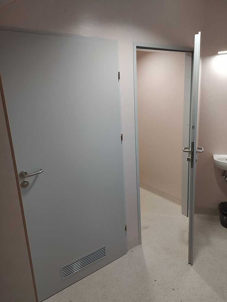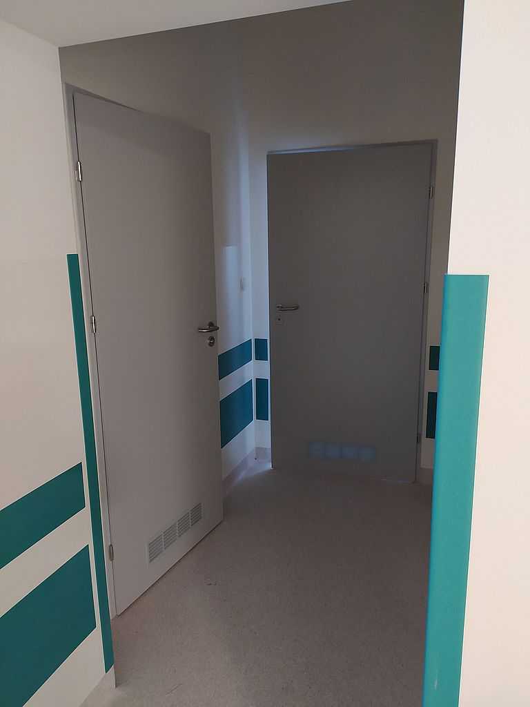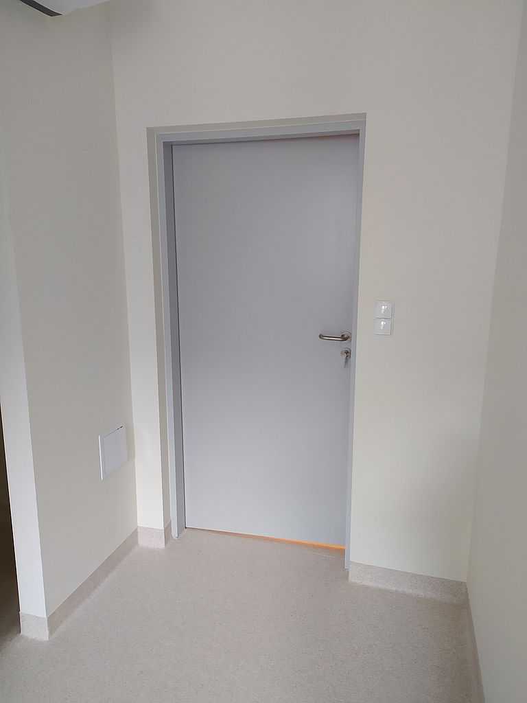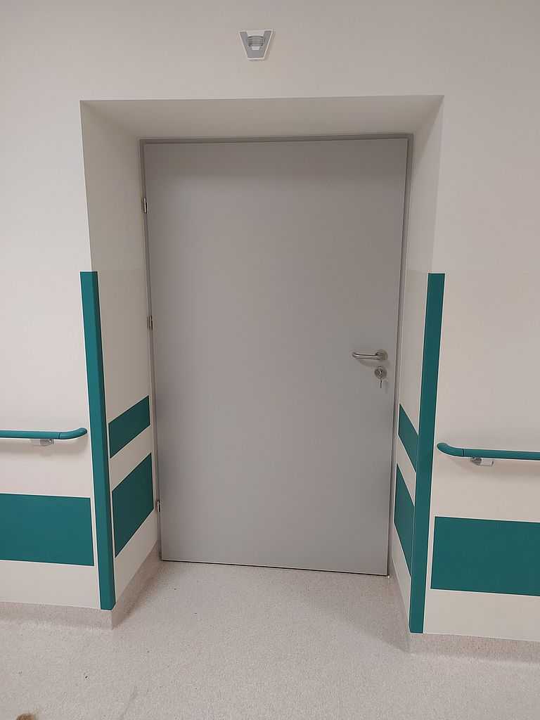 Kolejną realizacją z naszym udziałem była dostawa i montaż drzwi okleinowanych do Szpitala Specjalistycznego im. J. Dietla w Krakowie. Inwestor wybrał drzwi okleinowane CPL producenta Porta. Na załączonej dokumentacji zdjęciowej możemy zobaczyć zamontowane drzwi pełne, płaskie. Model 1.1. o różnych szerokościach. Dzięki wypełnieniu skrzydeł płytą wiórowo-otworową, drzwi posiadają dużo lepszą izolację akustyczną. Są bardziej stabilne oraz wytrzymałe przy eksploatacji, a w szpitalu ma to ogromne znaczenie. Skrzydła popielate w okleinie CPL o grubości laminatu 0,2 mm, którą stosuje się w budynkach użyteczności publicznej. Ten laminat wraz z wykończeniem taśmą brzegową ABS zapewnia optymalną ochronę skrzydeł przed uszkodzeniami mechanicznymi. Ościeżnice metalowe, kątowe. Malowane na kolor RAL 7035. Najbardziej zbliżony do koloru popielatego.