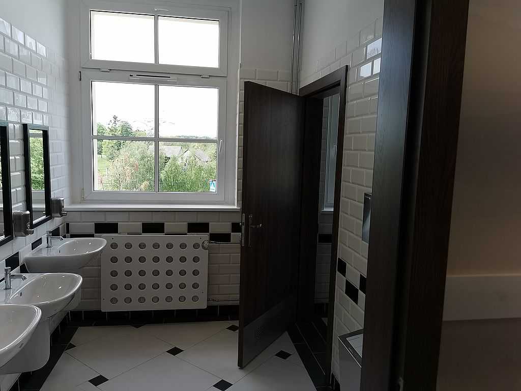 Drzwi Pol-Skone Jastrzębie Zdrój to kolejna inwestycja, którą zrealizowaliśmy Śląsku. Dostarczyliśmy komplety skrzydeł do nowej szkoły w Jastrzębiu Zdroju. Do obiektu dostarczyliśmy i zamontowaliśmy łącznie około 150 kompletów drzwi w różnych konfiguracjach. Do sal lekcyjnych zamontowaliśmy drzwi Pol-Skone Inter Amber A00. Skrzydła pełne płaskie w systemie bezprzylgowym w rozmiarze „90”. Z uwagi na charakter budynku, wypełnienie skrzydeł stanowi płyta wiórowo-otworowa. Wzmacnia ona konstrukcję skrzydła i pozwala zachować trwałość i stabilność. Wyposażone w trzy zawiasy kryte DUO oraz zamki HOBES na wkładkę patentową. Dedykowane ościeżnice to DIN DUO o różnych zakresach regulacji – w zależności od grubości muru z opaskami 80 mm.