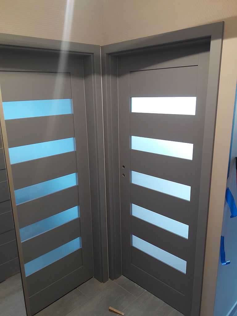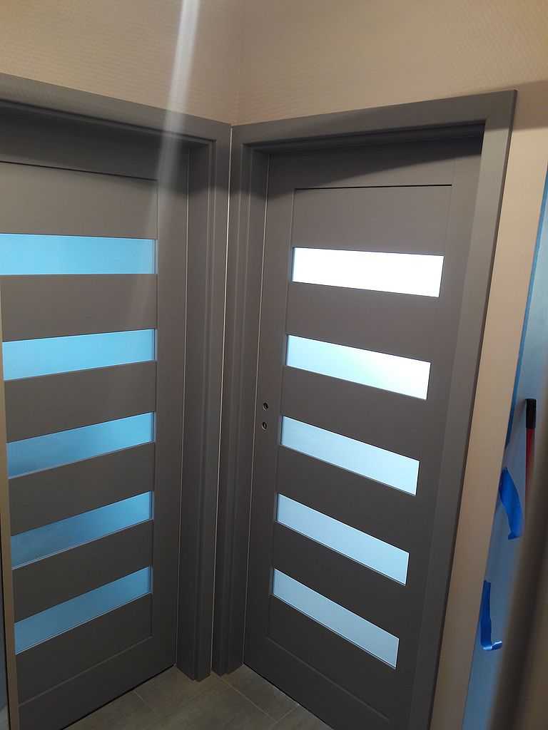 Drzwi Pol-Skone Kraków Złocień. Nasi montażyści zamontowali trzy komplety drzwi przylgowych Pol-Skone. Modele ARCO UNI W02 i W2S (łazienkowe z podcięciem wentylacyjnym) w kolorze UNI MAT stalowy 631 z ościeżnicami regulowanymi w systemie DIN z opaskami 60 mm. Konstrukcja skrzydeł ARCO jest ramiakowa, zbudowana z wysokiej jakości MDF-u pokrytego powierzchnią UINI MAT. Skrzydła w standardzie posiadają trzy zawiasy czopowe typu B oraz szybę matową o grubości 4 mm .
