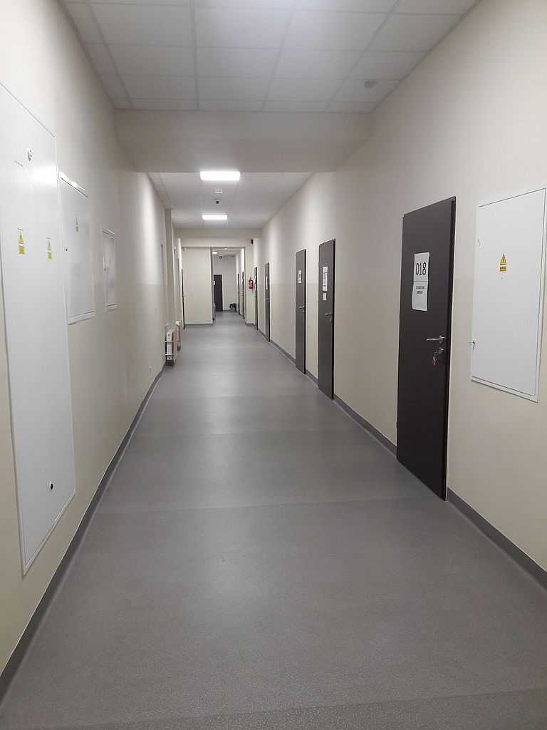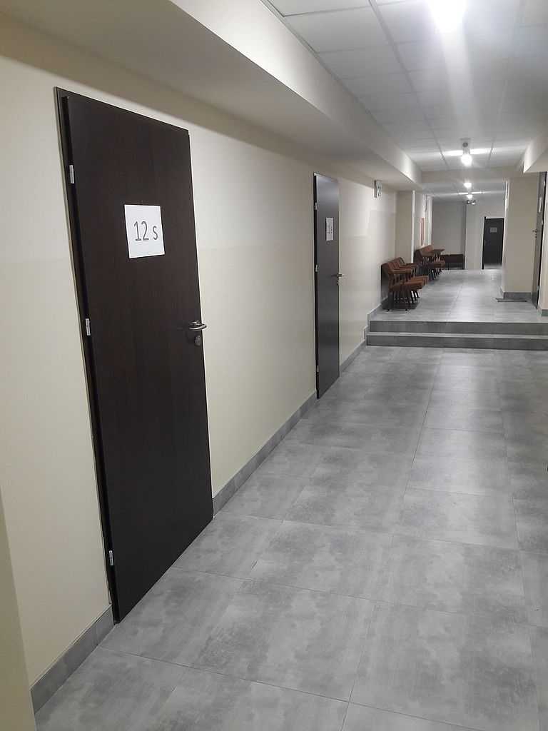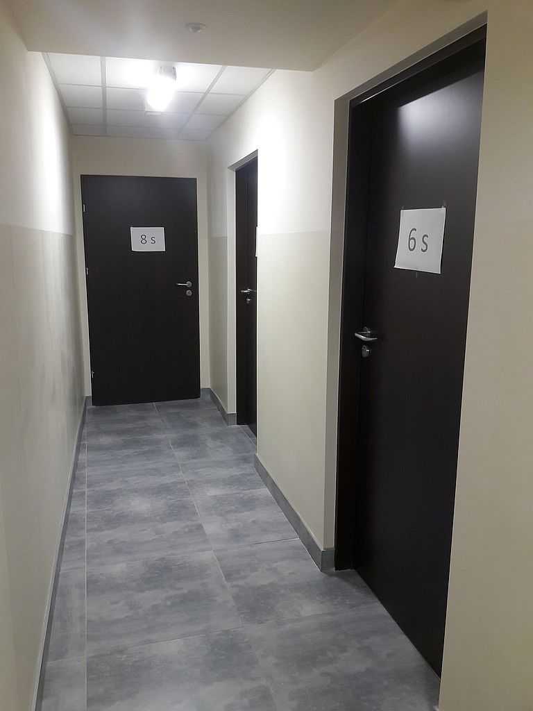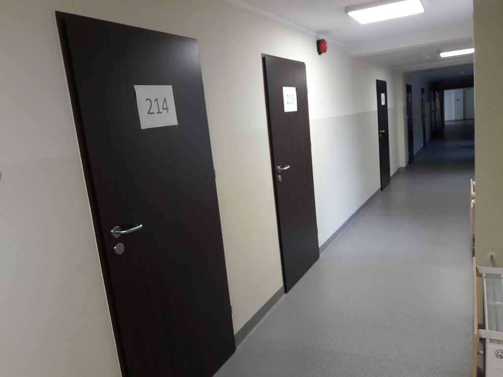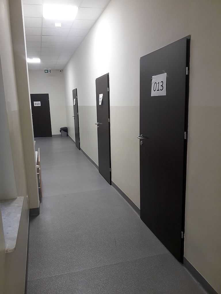 Kolejnym modelem z uwagi na specyfikę obiektu są drzwi Pol-Skone dźwiękoizolacyjne TYP A – 27 dB. Ich konstrukcję stanowi ramiak z drewna iglastego, obłożony obustronnie płytą HDF. Wypełnieniem jest płyta wiórowa pełna. Skrzydła powieszone są na ościeżnicach metalowych, stałych, system Pol-Skone. Ościeżnice w zasadzie są dedykowane do tego produktu. Drzwi te również dostarczyliśmy w takim samym pokryciu i kolorze, aby oba rodzaje nie różniły się wizualnie pomiędzy sobą.