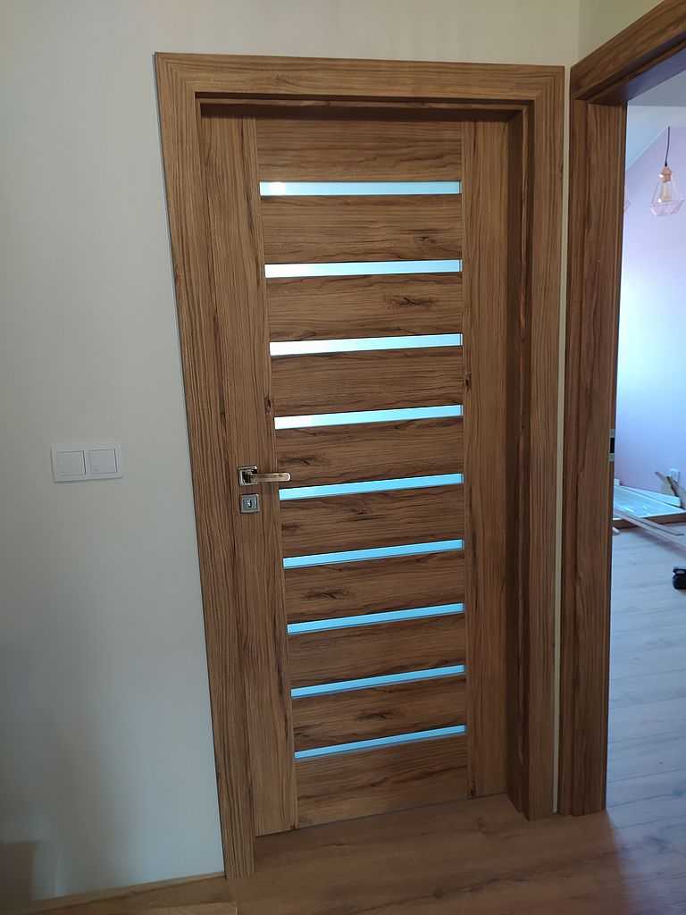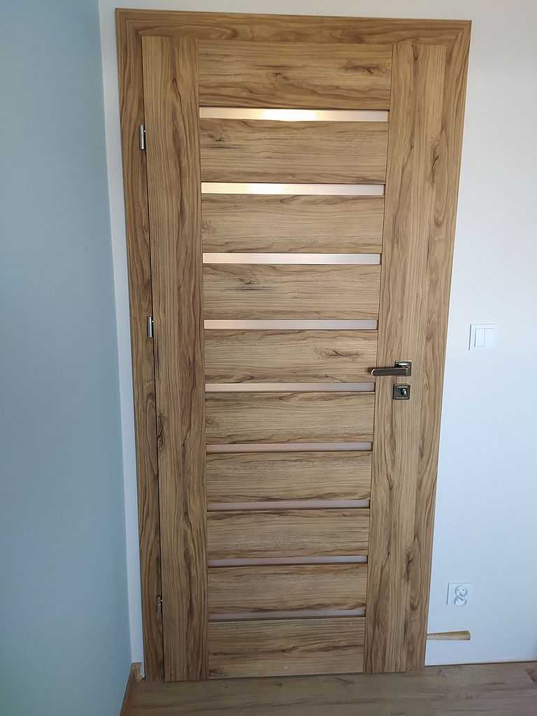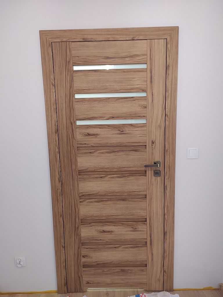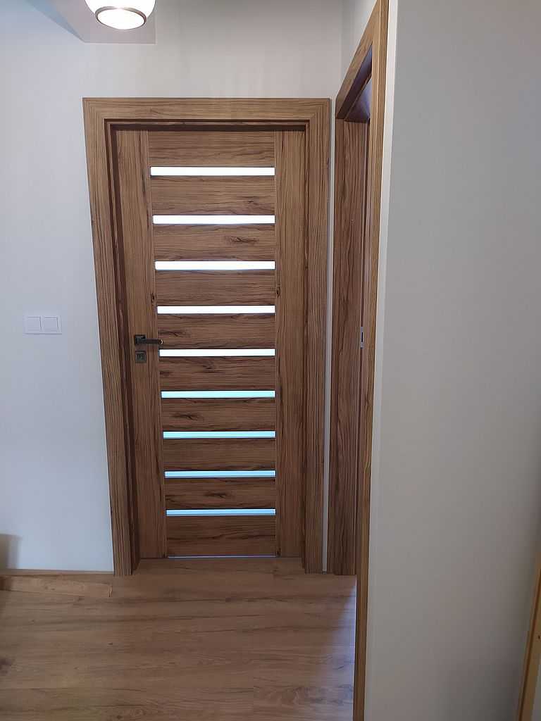 Na takie rozwiązanie zdecydował się Klient. Po precyzyjnych pomiarach nasza ekipa montażowa dostarczyła i zamontowała drzwi polskiego producenta marki Porta. Decyzja padła na model Porta Koncept, wzór A.9. i A.3. z wąskimi, poziomymi szybkami matowymi. Należy zwrócić uwagę, że są to skrzydła ramowe, w których ramiak zbudowany jest z klejonki drewnianej. To sprawia, że skrzydło jest bardzo stabilne i trwałe w użytkowaniu.