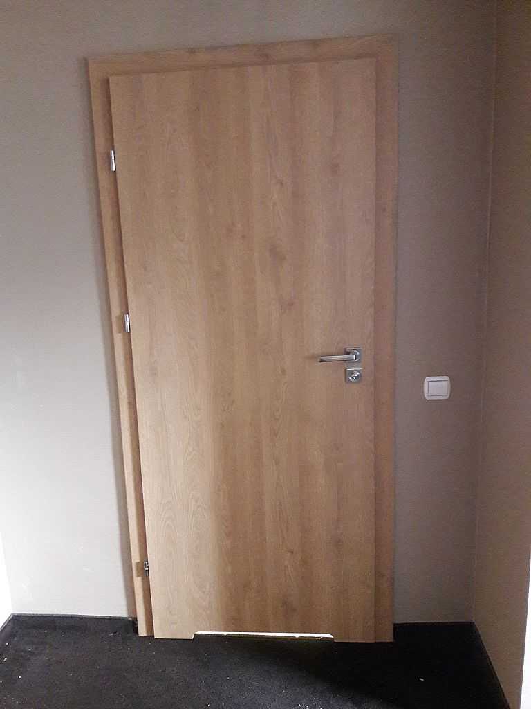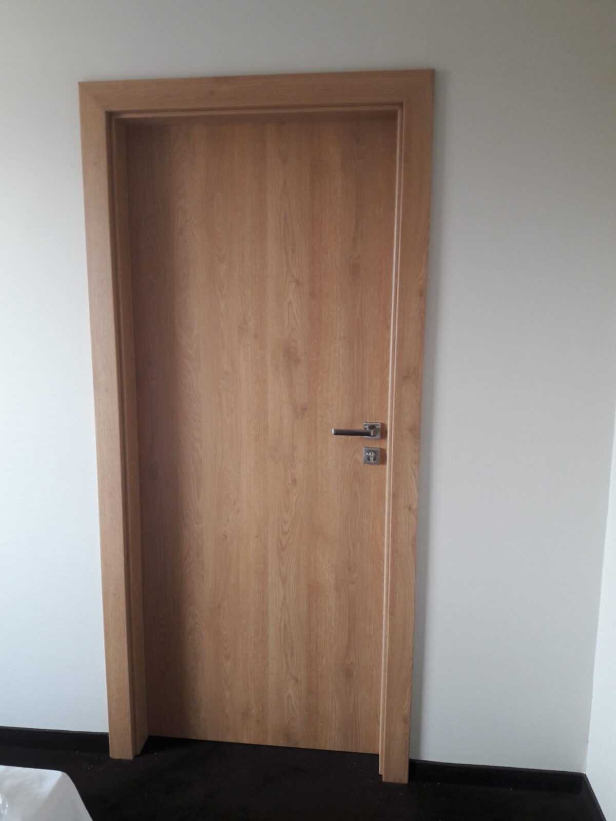 Są to drzwi pełne, płaskie w rozmiarze „80” z ościeżnicami regulowanymi Porta System o zakresach 9,5-11,5 ; 12-14. W łazienkach jako wentylację zastosowano podcięcie wentylacyjne. Klamki producenta ROOTHKIN, INES QR9 na rozecie kwadratowej w kolorze nikiel satyna.