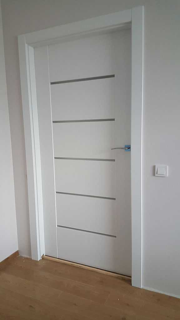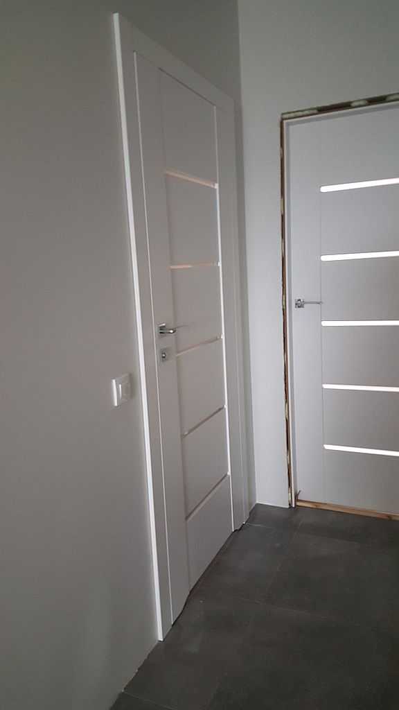 Drzwi DRE AURI Łódź Górna. Do mieszkania w bloku na ulicy Zamojskiej dostarczyliśmy i zamontowaliśmy 4 komplety drzwi bezprzylgowych DRE AURI z ościeżnicami regulowanymi. Skrzydła AURI są o konstrukcji ramowej. Drzwi w modnej i ponadczasowej białej okleinie, z zamkami magnetycznymi. Szyby MAT DRE. Całość zamontowaliśmy w ościeżnicy na trzech zawiasach Estetic 80. Opaski w ościeżnicach łączone są pod katem 90 stopni. Rozmiary dostarczonych drzwi: „80” i „90” z ościeżnicami o zakresach 095-115 i 160-180. Do skrzydeł doskonale pasują klamki Infinity Vento w kolorze chrom połysk.
