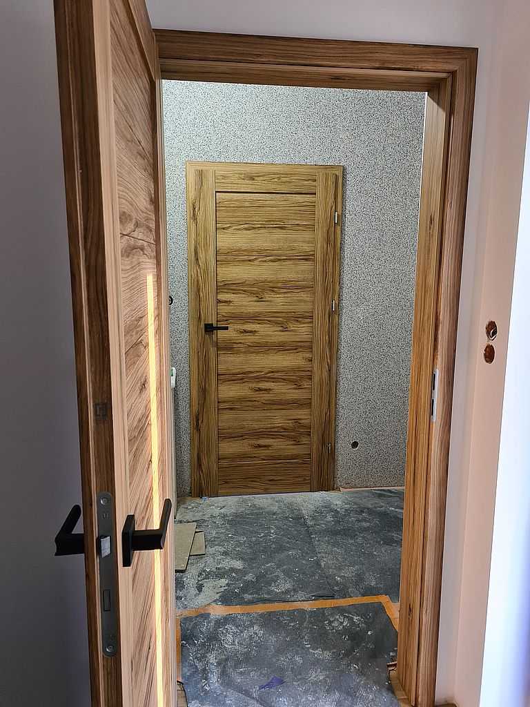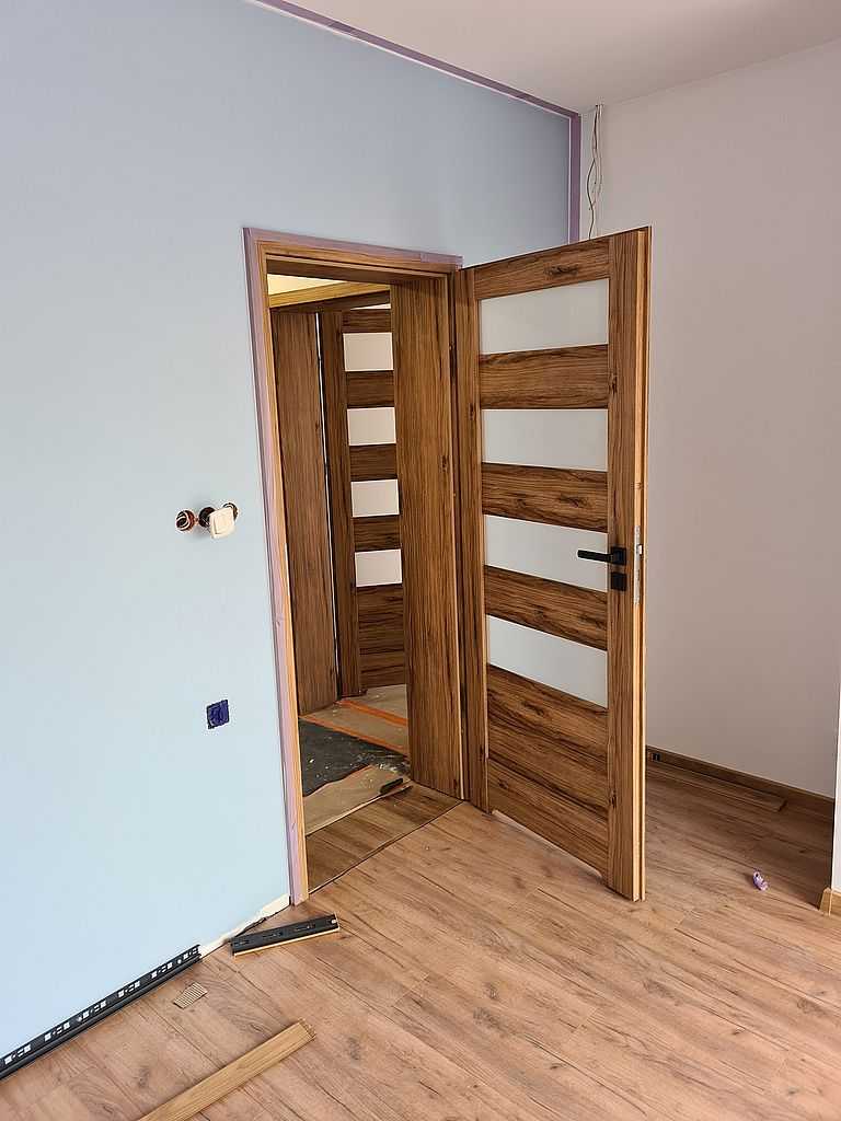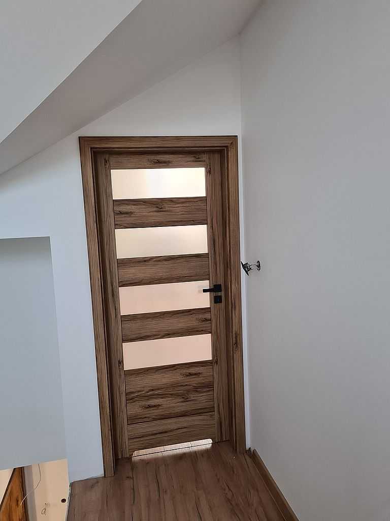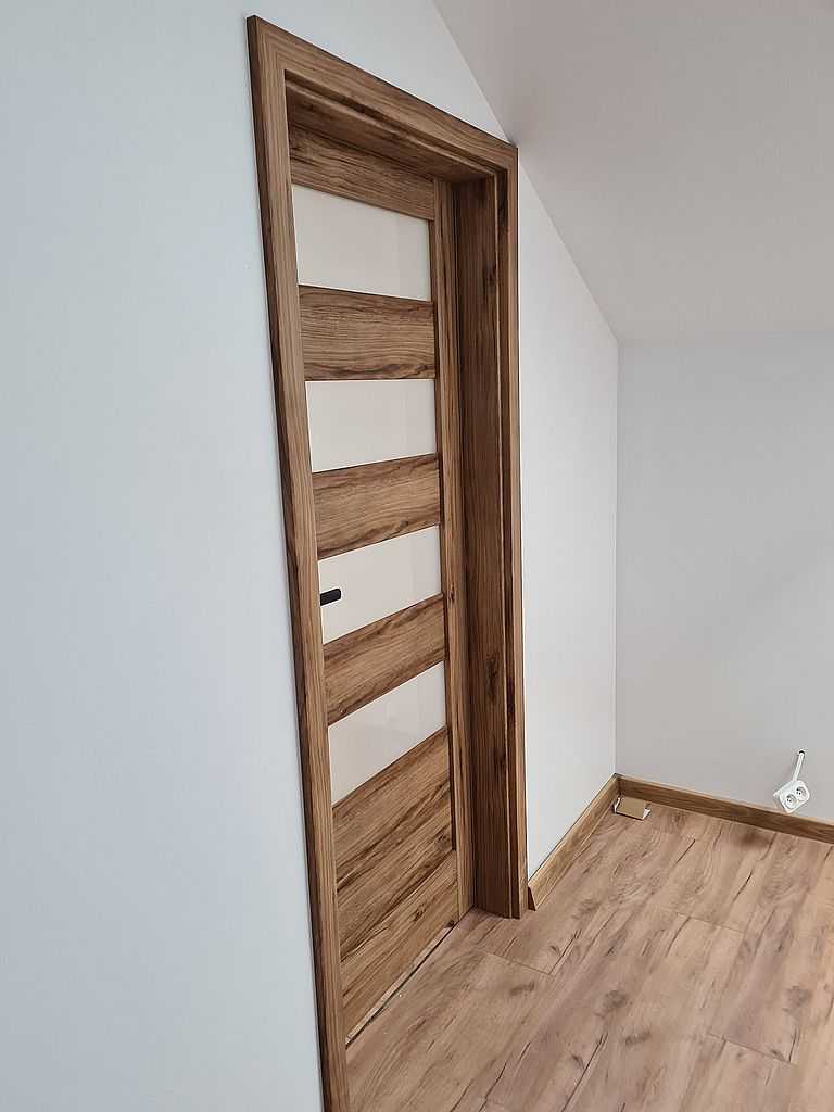 Wybór kolorystyki drzwi w naszym mieszkaniu często stanowi nie lada wyzwanie. Daje się to we znaki zwłaszcza, gdy chcemy w naszym zacisznym miejscu stworzyć komfortową i przyjemną atmosferę. Jeżeli nie przemawia do nas uniwersalny, biały kolor będący jednym z największych trendów ostatnich czasów, wybór najczęściej pada na akcenty drewnopodobne. Tak też stało się w przypadku realizacji jednego z domów jednorodzinnych w Zgierzu. Nasi Klienci bezkompromisowo wybrali kolor bliźniaczy wzornictwem i odcieniem do paneli podłogowych. Okazało się to strzałem w dziesiątkę.