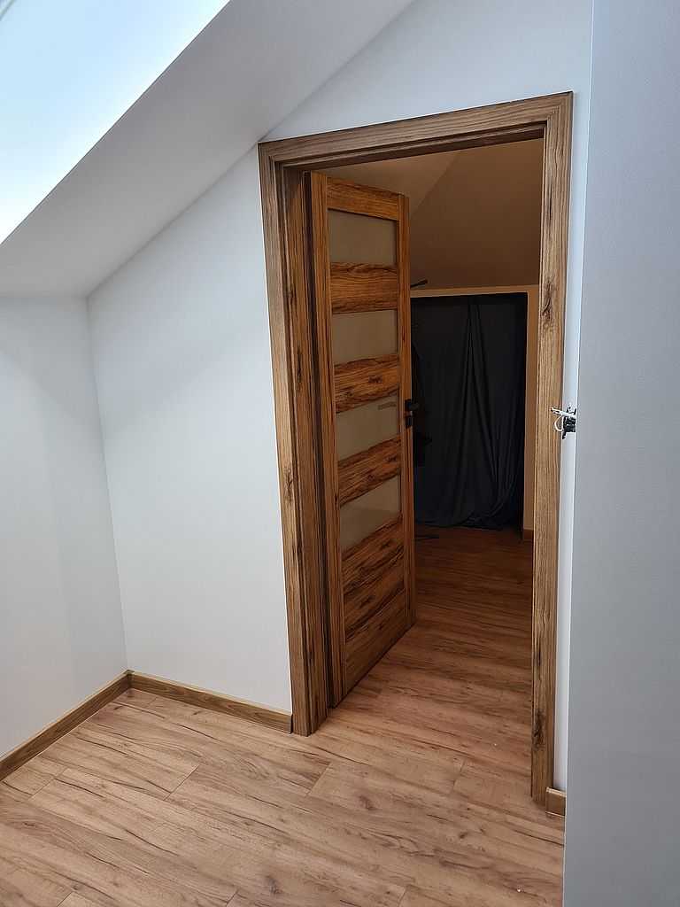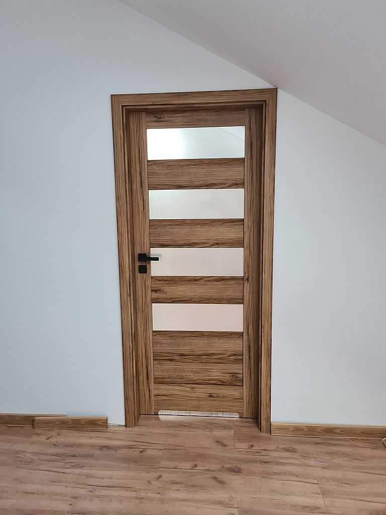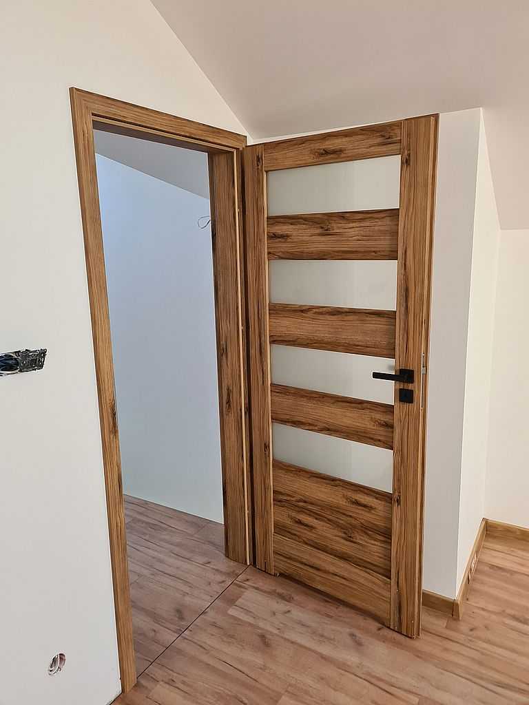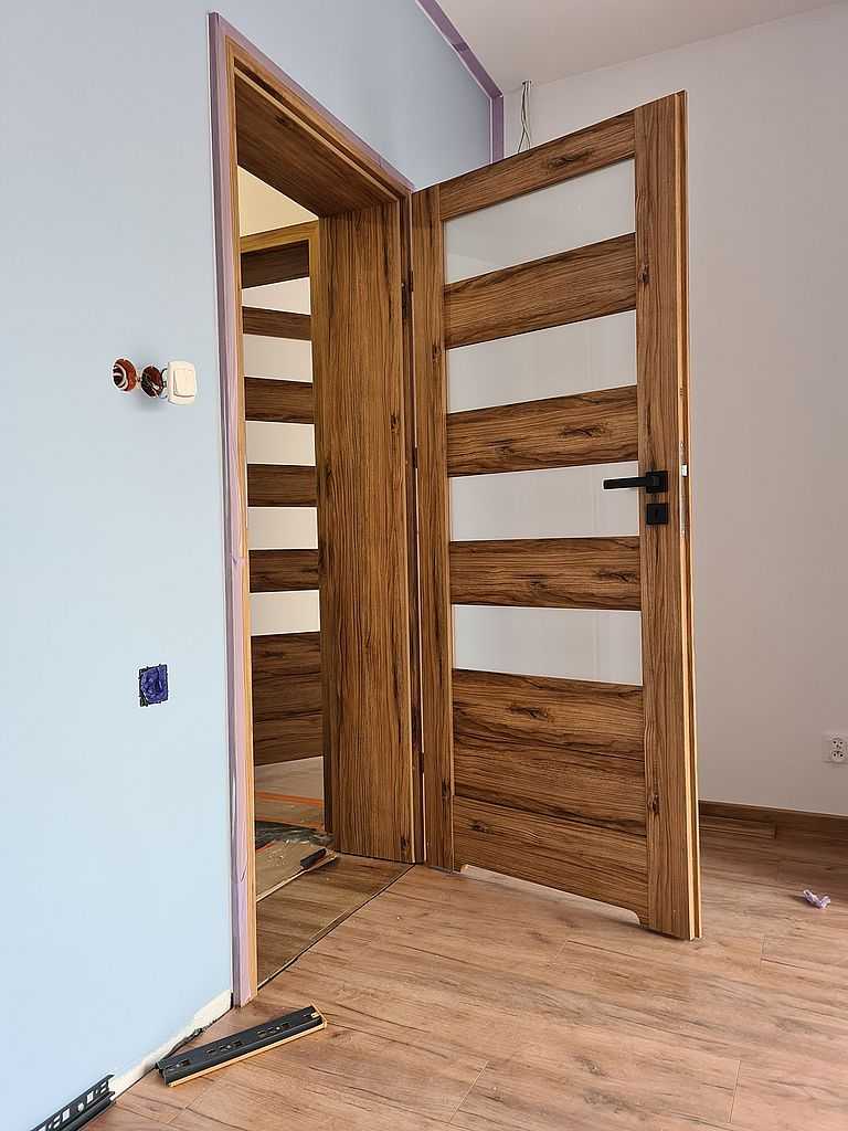 Wybór kolorystyki drzwi w naszym mieszkaniu często stanowi nie lada wyzwanie. Daje się to we znaki zwłaszcza, gdy chcemy w naszym zacisznym miejscu stworzyć komfortową i przyjemną atmosferę. Jeżeli nie przemawia do nas uniwersalny, biały kolor będący jednym z największych trendów ostatnich czasów, wybór najczęściej pada na akcenty drewnopodobne. Tak też stało się w przypadku realizacji jednego z domów jednorodzinnych w Zgierzu. Nasi Klienci bezkompromisowo wybrali kolor bliźniaczy wzornictwem i odcieniem do paneli podłogowych. Okazało się to strzałem w dziesiątkę.