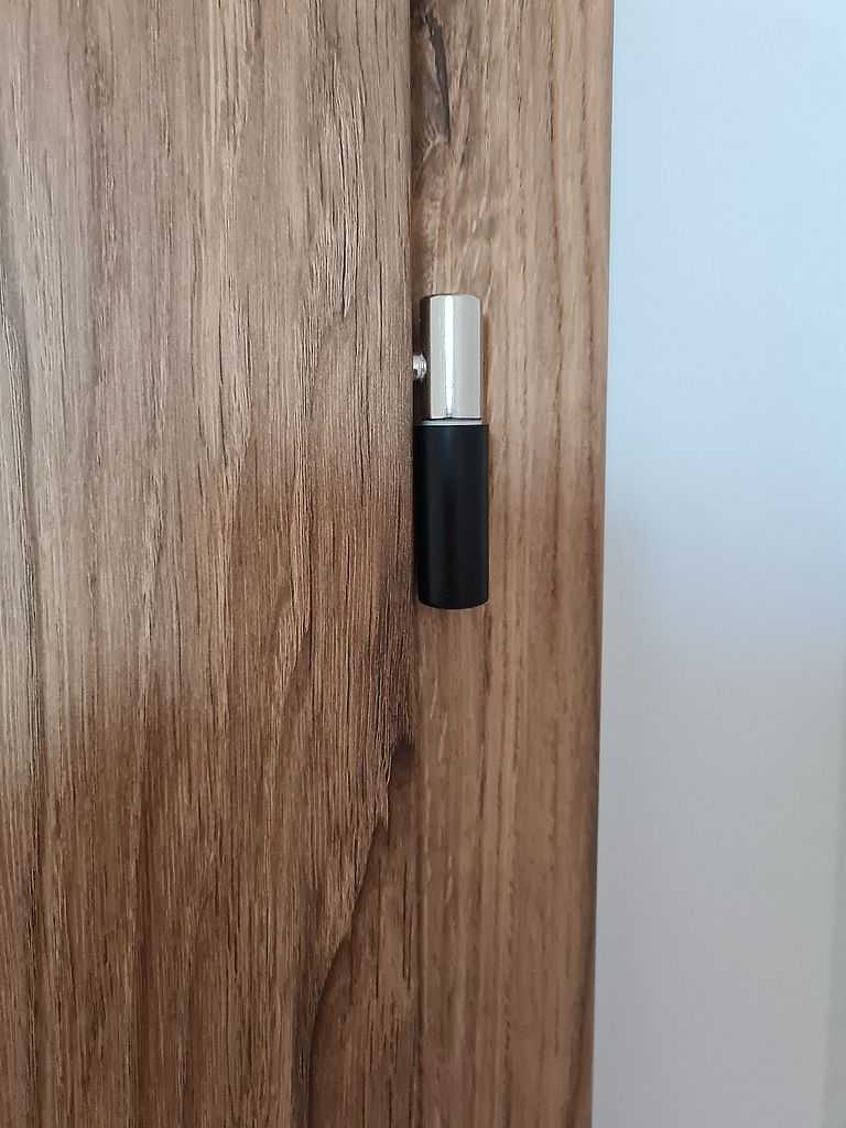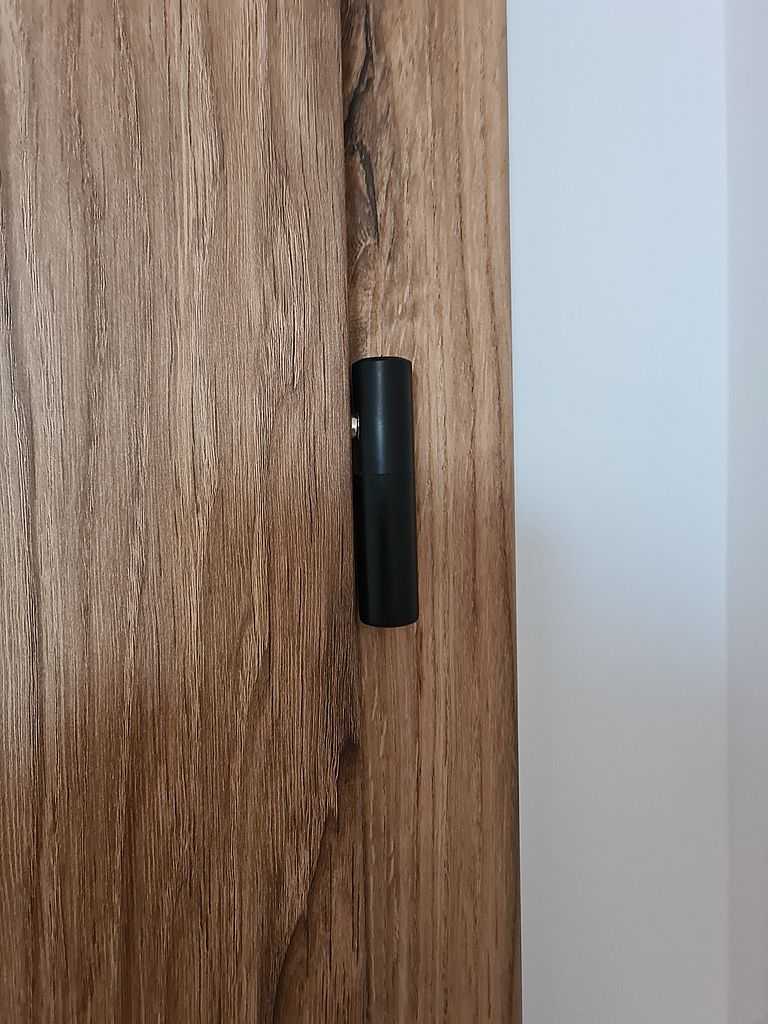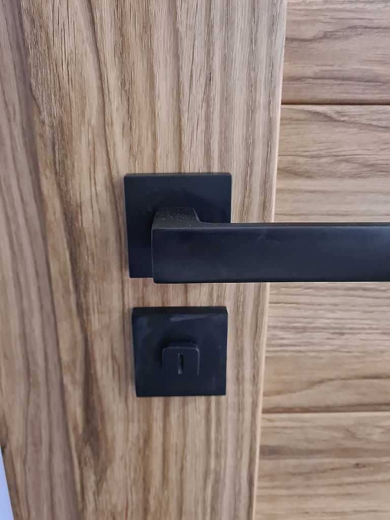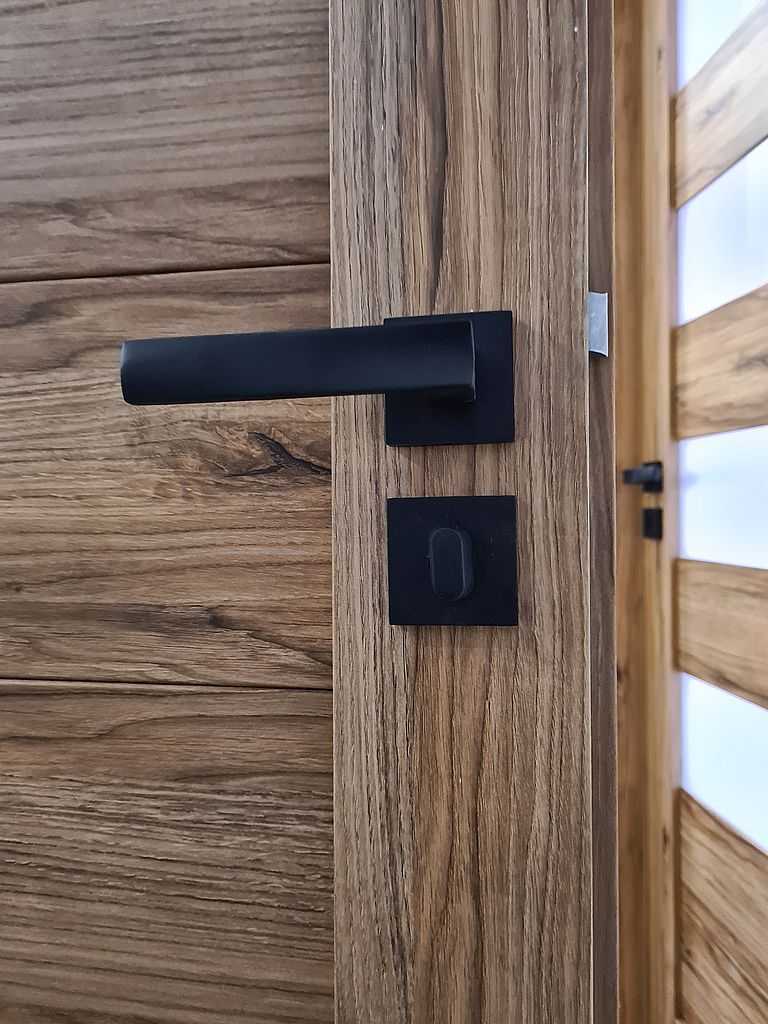 Dąb Catania, bo o tym kolorze mówimy prezentuje się na zamontowanych przez nas drzwiach Porta Verte C świeżo, nieszablonowo, aczkolwiek klasycznie. Mimo prostego wzornictwa skrzydeł, wprowadzają one do wnętrza mnóstwo harmonii. Zbliżenie kolorystyki drzwi i podłóg spowodowało dopełnienie aranżacji pięknymi dębowymi akcentami. Niosąc za sobą ukojenie dla zmysłów oraz bardzo przytulny klimat. A wszystko to jedynie za sprawą słojów! Do zamontowanych drzwi Klienci dobrali klamki w kolorze czarnym Metalbud Ibiza. Idealnie kontrastują one z białymi wnętrzami pomieszczeń, jak i z jaśniejszymi przebłyskami słoi nietuzinkowego Dębu Catania.