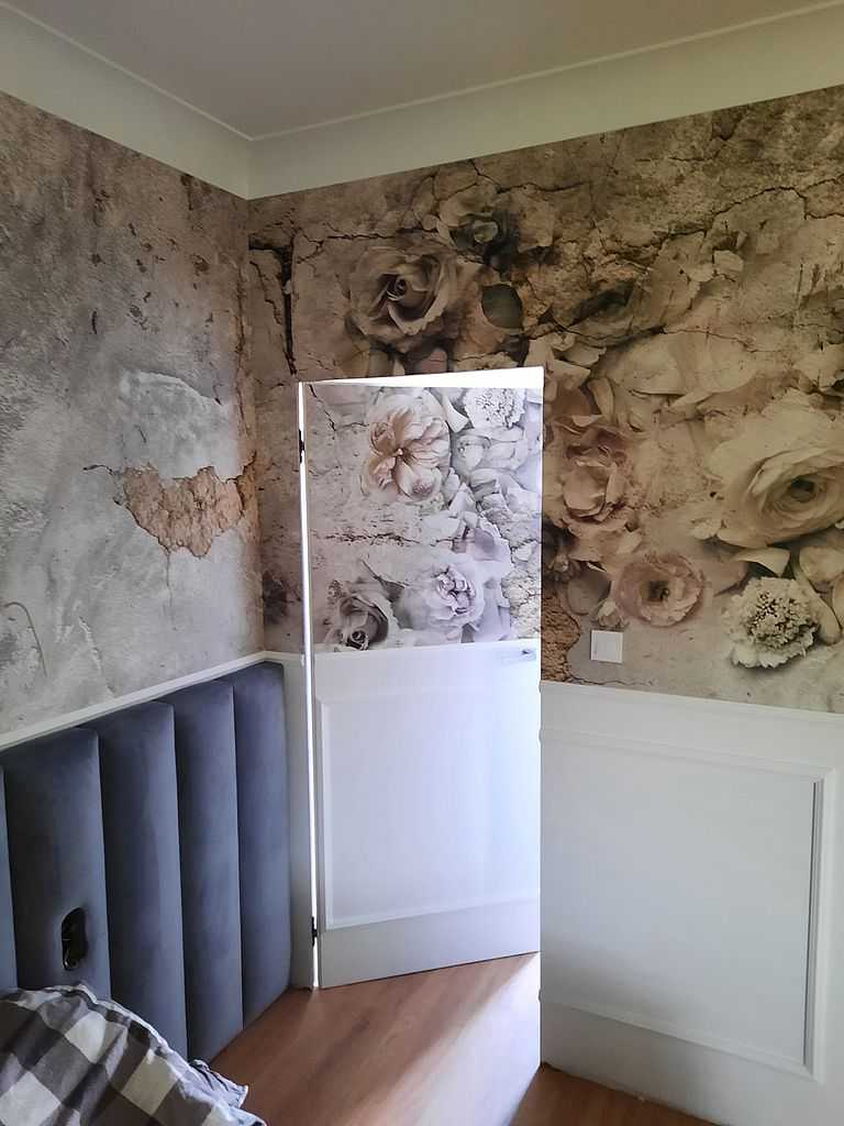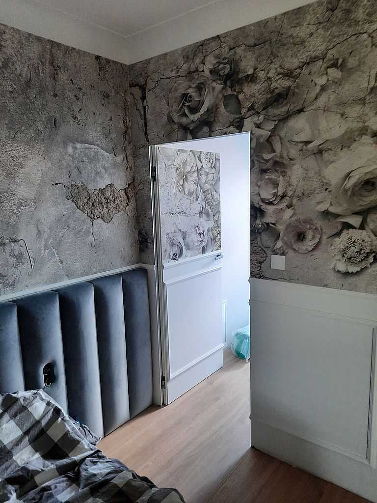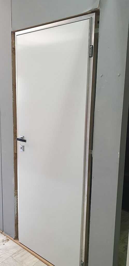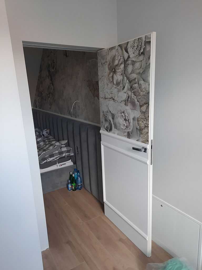 Drzwi ukryte Łódź. Tym razem dostarczyliśmy i zamontowaliśmy drzwi DRE. był to model Sara Eco z ościeżnicą ukrytą. Skrzydła DRE Sara Eco to rozwiązanie, które daje efekt niewidocznych drzwi. Jest to bardzo modne i nowoczesne rozwiązanie. Do kompletu zamontowaliśmy ościeżnicę aluminiową, którą z reguły montujemy wcześniej, żeby klient mógł ją obrobić zaprawą tynkarską. Po takiej obróbce widoczny jest jedynie wrąb ościeżnicy, który się maluje. Prezentowane skrzydło zamówione było w wersji malowanej jedynie farbą podkładową. Klient we własnym zakresie nakleił na nie tapetę. Dla porównania zestawiamy ze sobą skrzydło w gruncie wraz z ościeżnicą nieobrobioną i skrzydło po ostatecznej obróbce.