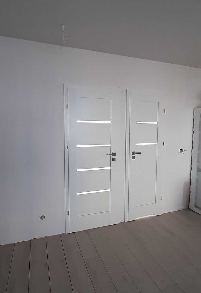 Na jednej z naszych realizacji w Łodzi, wybór klienta, ze względu właśnie na potrzebę szybkiej realizacji zamówienia padł na drzwi wewnętrzne od ręki. Przedstawiamy realizacje zamówienia drzwi Porta Verte Home G wraz z klamkami polskiej produkcji, które mamy również na stanie magazynowym – Metalbud Topaz w kolorze stal nierdzewna, której cena oscyluje w okolicach 50 zł netto/ szt. Cała aranżacja stanowi kompromis pomiędzy szybkim terminem realizacji, ekonomiczną ceną jak i jakością wykonania. Jak najbardziej polecamy ten produkt i zapraszamy do zakupów.