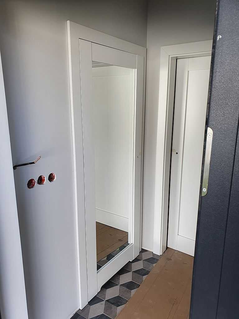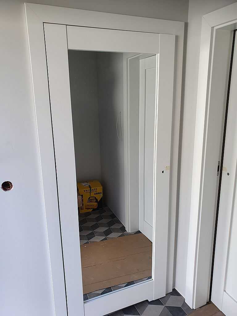 Drzwi Porta Grande Łódź. Dostarczyliśmy i zamontowaliśmy 7 kompletów drzwi PORTA w wersji bezprzylgowej z ościeżnicami regulowanymi. Drzwi ramowe posiadające specjalną wielowarstwową konstrukcją z drewna. Kolekcja drzwi Porta Grande, model A0 pełne i A1. Całość w farbie akrylowej UV. Farba ta charakteryzuje się wysoką odpornością na zarysowania, uderzenia, ścieranie i zabrudzenia. Użytkownik ma gwarancję stałości koloru na bardzo długie lata. Drzwi wyposażone w zamki magnetyczne i 3 zawiasy chowane. W modelu A1 zamontowane lustro jednostronnie. Do skrzydeł odpowiednio dopasowaliśmy ościeżnice Porta System Elegance z opaskami 8 cm o zakresach 140-160. Rozmiary drzwi: „70” i „80”.