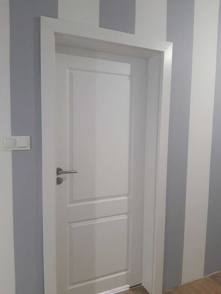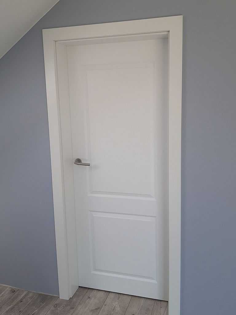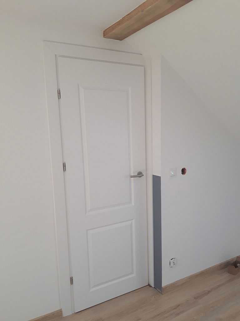 Niedaleko miejscowości Nekla dostarczyliśmy oraz zamontowaliśmy 11 kompletów drzwi. Nasza Klientka zdecydowała się na drzwi Porta Royal A. Klasyczny model w wersji przylgowej, skrzydło zawieszone na trzech zawiasach czopowych w kolorze srebrnym. Producent w standardowej konfiguracji proponuje wypełnienie styropianowe, natomiast Inwestorka wybrała płytę wiórową pełną ( opcja za dopłatą), dwustronnie obłożoną tłoczoną płytą HDF – rozwiązanie to zapewnia większą stabilność skrzydła i  pozwala na wieloletnie użytkowanie bez obawy o ewentualne wypaczenia.