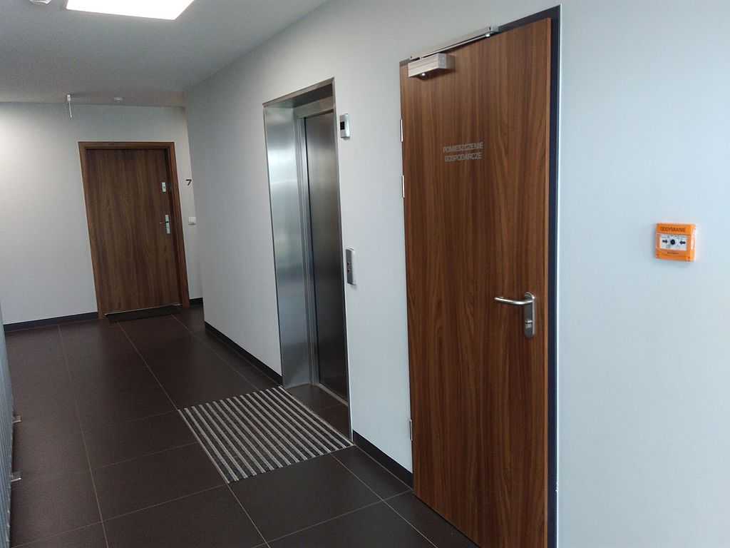 Apartamenty Warszewo, ul. Maciejkowa, Szczecin. dostawa i montaż drzwi Porta Opal z nakładką Projekt Premium z górnym portalem Orzech Modena 2, drzwi EI 30, drzwi do szachów dostosowane do nietypowej wysokości. Inwestor Marina Developer. Rrealizacja 2017 rok.
