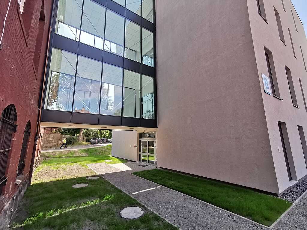 Kolor skrzydeł to RAL 7047. Zamontowane ościeżnice stalowe pomalowano w kolorze zbliżonym do skrzydła RAL 7035. Niewielka różnica kolorów jest zabiegiem celowym mającym wizualnie oddzielić ościeżnicę od skrzydła. W pomieszczeniach o ograniczonym dostępie zastosowaliśmy kontrole dostępu w postaci zabezpieczeń na kartę magnetyczną oraz zabezpieczeń na kod. Zamontowaliśmy także elektrozaczepy ECO SCHULTE ECO S12 R.