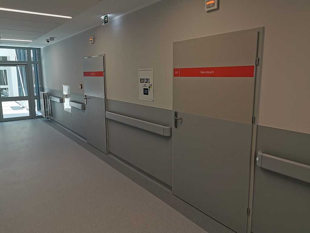 Drzwi okleinowane Szczecin. Dostarczyliśmy oraz zamontowaliśmy drzwi Porta w budynku szpitala w Szczecinie. Obiektem inwestycji był budynek B, wraz z łącznikiem, Kliniki Ginekologii, Położnictwa i Patologii Noworodka. W zakres inwestycji, w dużej mierze wchodziły skrzydła Porta, model CPL 1.1. Do drzwi zastosowaliśmy odporną na uszkodzenia mechaniczne okleinę CPL o grubości 0,7 mm. Jest to optymalne rozwiązanie w wyborze drzwi do budynków użyteczności publicznej. Skrzydła te mają zastosowanie we wszystkich miejscach, gdzie będą intensywnie użytkowane. Czyli takich jak: szkoły, urzędy, biura czy inne budynki instytucji publicznych.