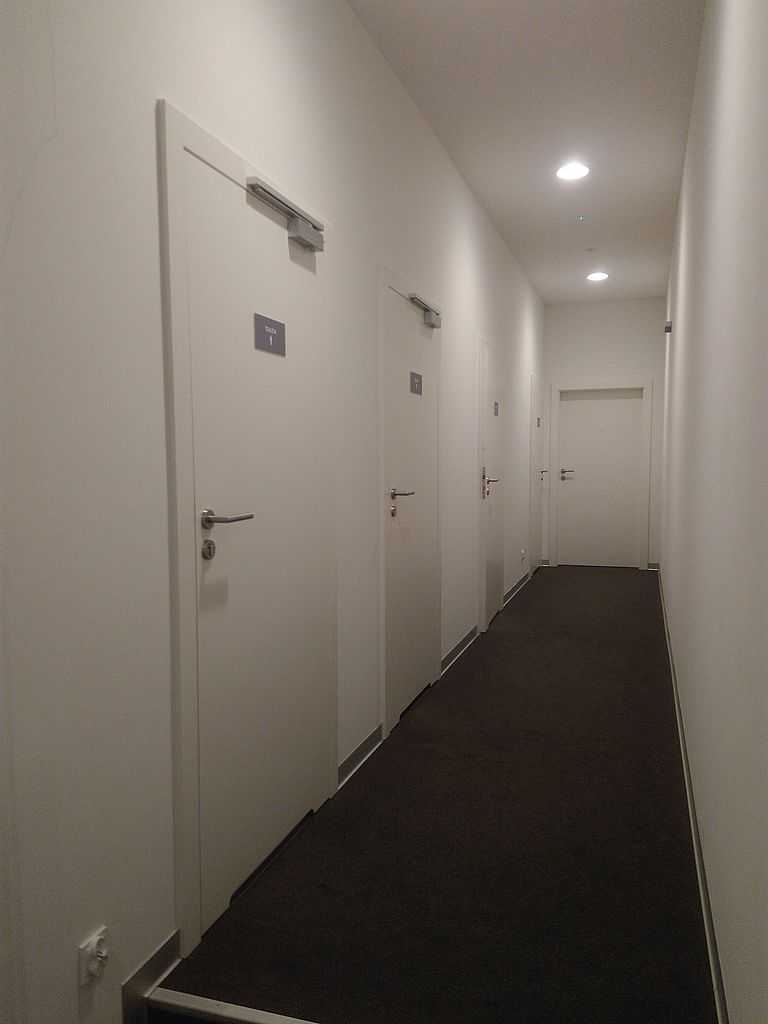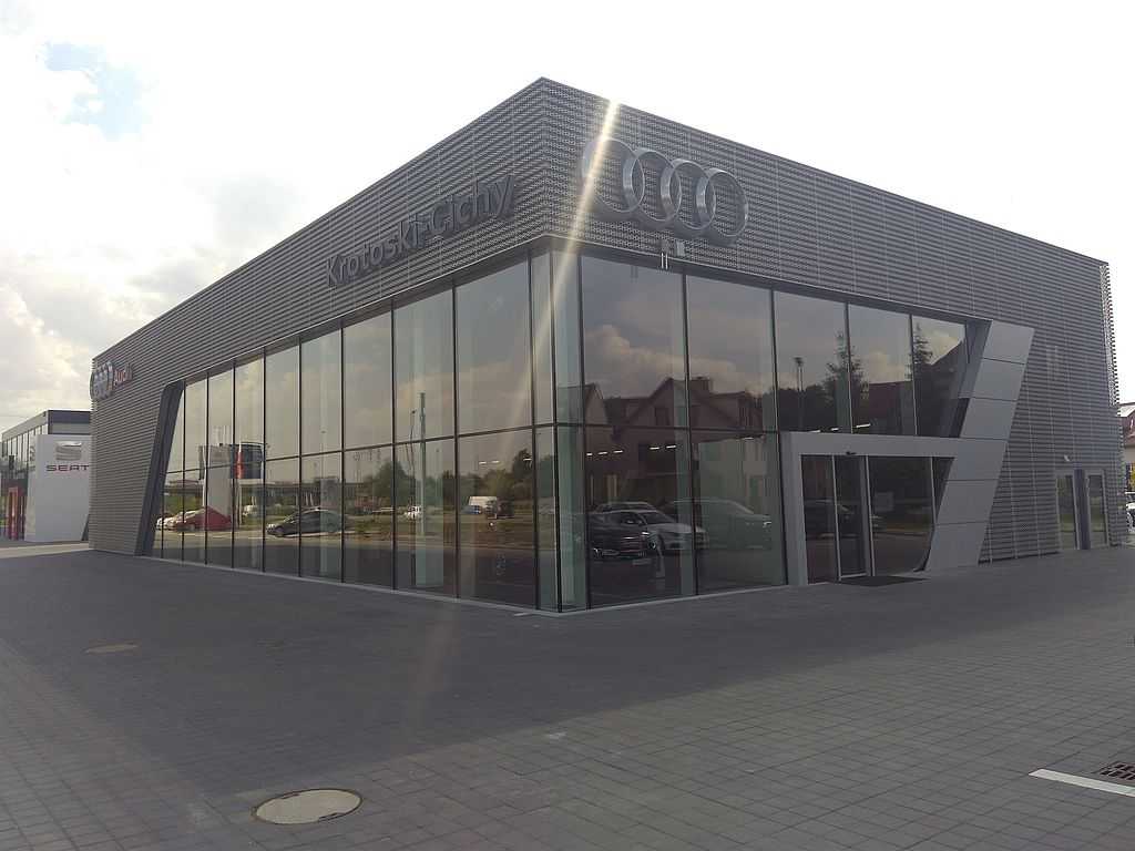 Drzwi Porta CPL Gumieńce. Dostarczyliśmy i zamontowaliśmy drzwi PORTA w kompleksie salonów samochodowych Audi, Seat, VW przy ulicy Południowej na szczecińskich Gumieńcach. Przedstawiane drzwi to model CPL. Są to skrzydła płaskie z ukrytymi zawiasami. Zarówno skrzydła jak i ościeżnice w kolorze białym. Do montażu zastosowaliśmy ościeżnice regulowane Elegant. Zamontowaliśmy także drzwi przeciwpożarowe EI 30 w kolorze białym. Samozamykacze do drzwi przeciwpożarowych to produkt firmy Assa Abloy model DC 135. Do wszystkich drzwi zamontowaliśmy klamki dzielone firmy VDS ze stali nierdzewnej. Generalny wykonawcą była Firma Budowlana Handlowo-Usługowa Renata Leczkowska. Na inwestycji zamontowaliśmy około 60 szt. drzwi.