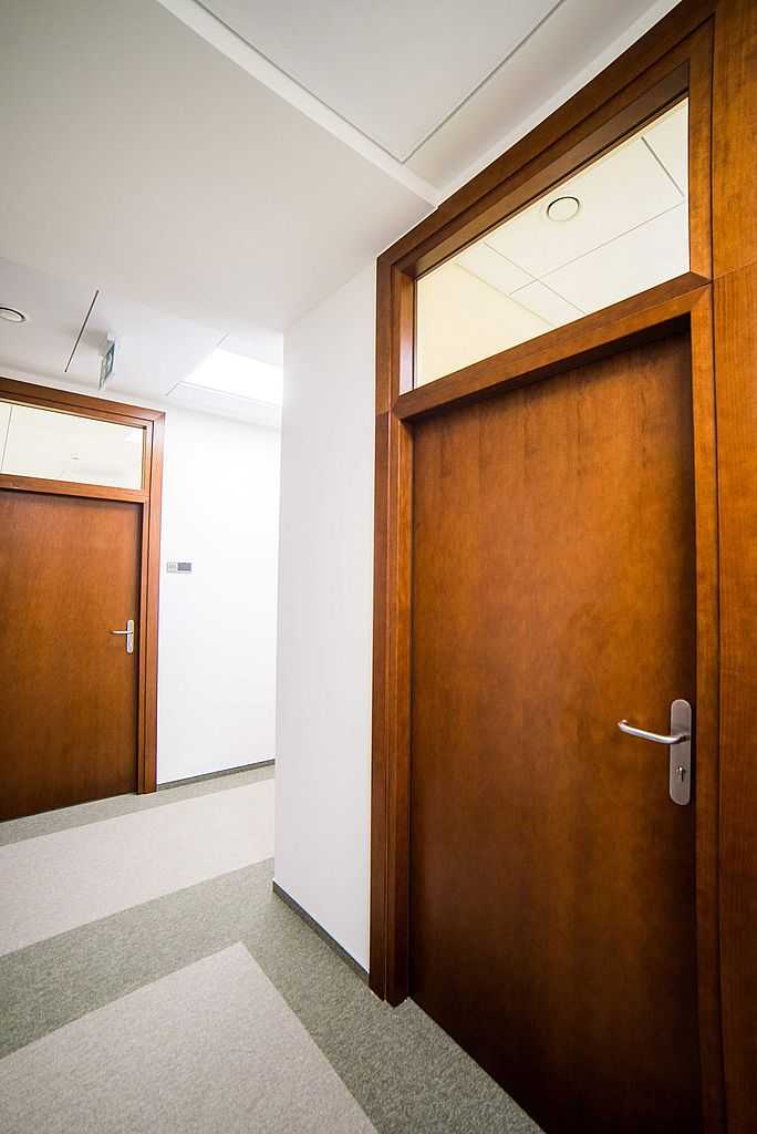 Duża część zestawów wyposażona została w naświetla górne. Konstrukcja skrzydeł EI30 oraz 37 dB to ramiak z drewna iglastego. Drzwi 37 dB zawierają próg dębowy z listwą aluminiową zabezpieczającą przed nadmierną eksploatacją. Obróbka i wykończenie drzwi w przeważającej większości została wykonana w oparciu o wysokiej jakości naturalny fornir w dwóch odcieniach: jesion oraz teak. Kolory dopasowane zostały do wystroju wnętrz. Drzwi posiadają zawiasy czopowe regulowane w 3 płaszczyznach.