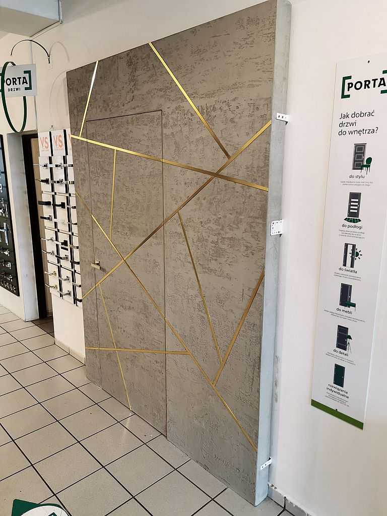 Pol-Skone Harmony Szczecin. Przedstawiamy Państwu nowatorskie rozwiązanie drzwi Pol-Skone. Zamontowaliśmy drzwi Harmony w systemie bezprzylgowym. Szerokość skrzydła to 80 cm, prawe, otwierane na zewnątrz. Konstrukcja skrzydła pozwala na zlicowanie się z powierzchnią ościeżnicy. Zaprezentowany wzór jest autorskim projektem naszej firmy. Powierzchnia strony wewnętrznej do wyboru: gładka malowana lub w podkładzie do samodzielnego malowania. Od zewnętrznej strony, drzwi pokryte są powłoką cementową o grubym ziarnie. Dodatkowo ozdobione listwami w kolorze złotym. Serdecznie zapraszamy do odwiedzin naszego salonu.